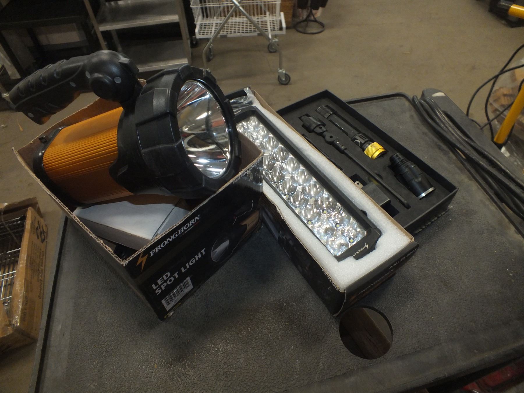 you get a 10" light bar, and 2 flashlights...store returns...sold as is