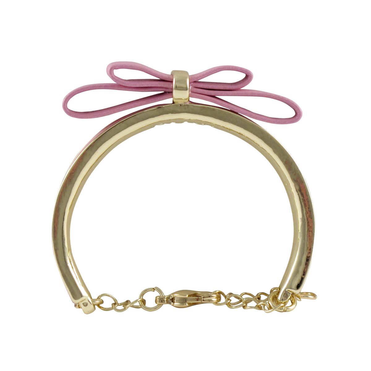 Light Pink Bow On Light Pink Enamel Gold Plated Brass Bangle Bracelet, 4.5 1