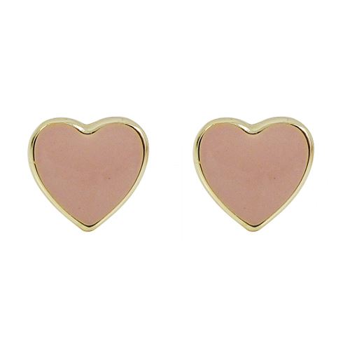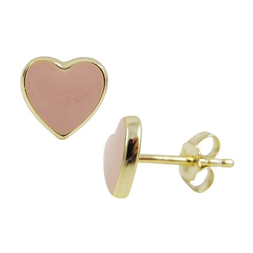 Light Pink Enamel Heart Stud, Gold Over Sterling Silver Post Earrings-0.31"