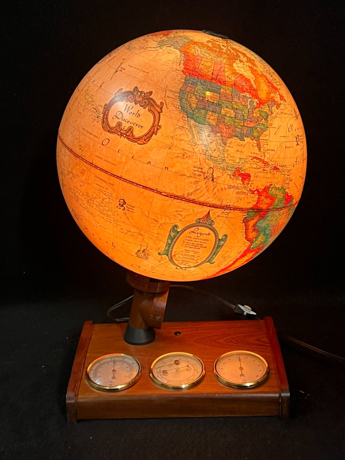 Please view all photos. Light Up Scan - Globe Demark Lamp With Barometer base (Approx: 17.5" tall)