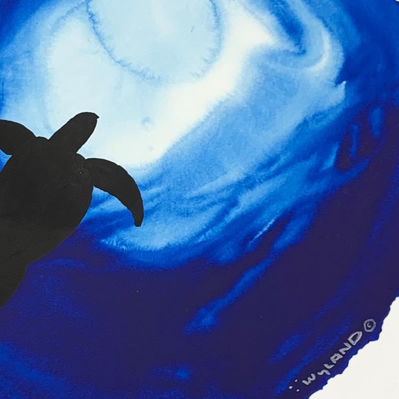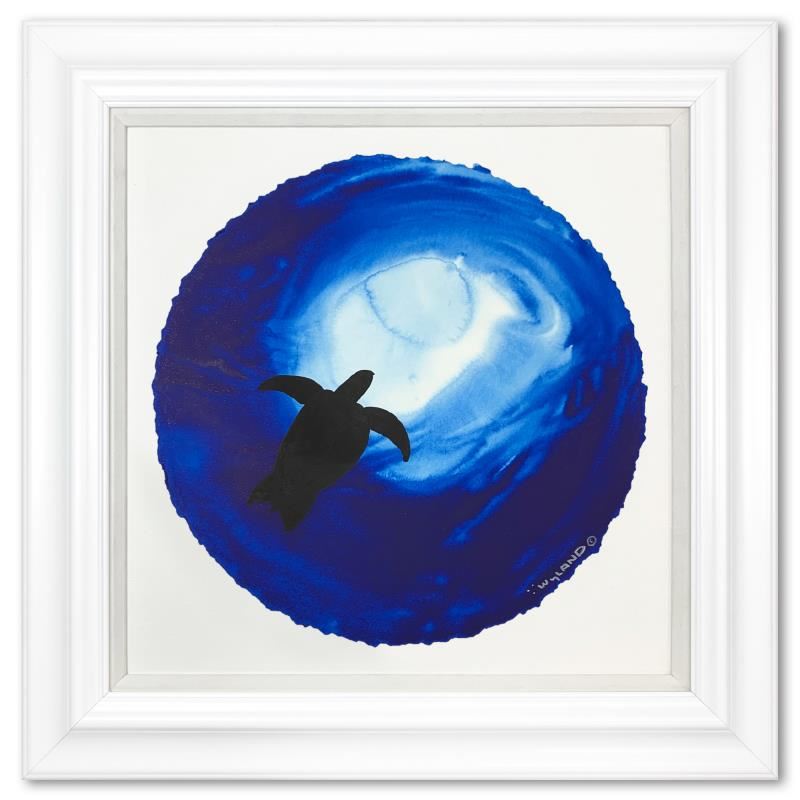 "Light at the surface" is an original painting, watercolor on deckle edge paper by Wyland. Hand signed by the artist, the piece comes custom framed and with a letter of authenticity. Measures approximately 30" x 30" (framed), 19.5" x 19.5" (image).