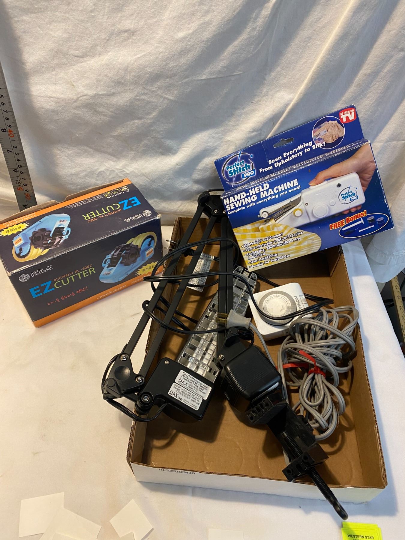 Light, timer, hand held sewing machine, ez cutter