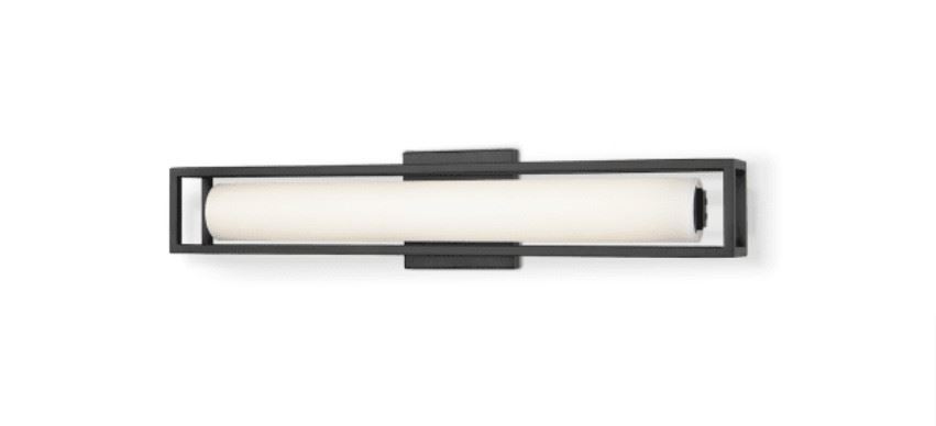 Rectangular indoor wall-mounted light fixture, black finish with frosted glass, energy-efficient, new.
