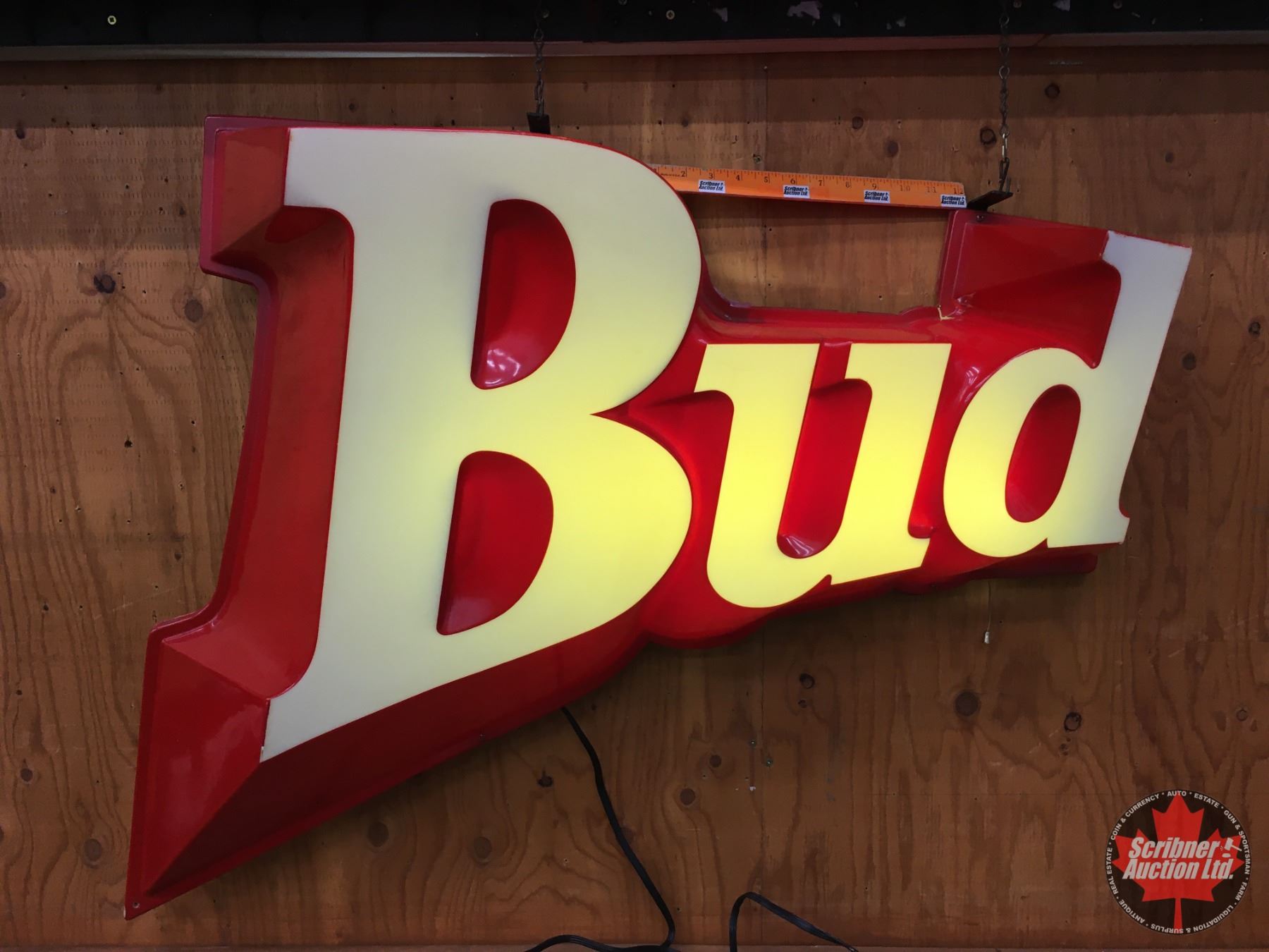 Lighted 3-D Advertising "BUD" Sign (Indoor Electric Sign) (Note: minor damage on top/back) (29"H x 38"W x 11"D) (SEE PICS!)