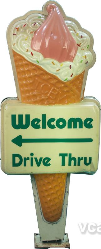 Lighted Figural 3-D Double sidedTCBY Cone Shaped Sign "Welcome Drive Thru" w/ Arrow - 62" Tall