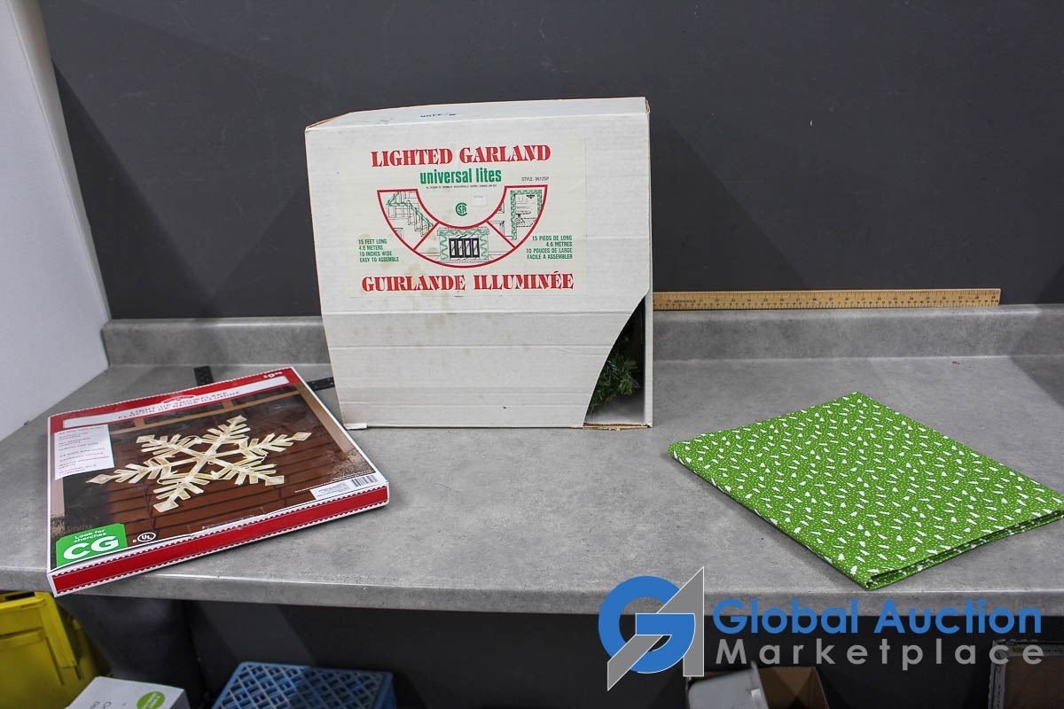 Lighted Garland, Snowflakes & Festive Tablecloths