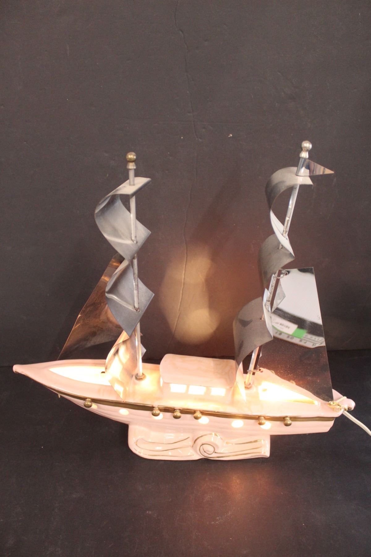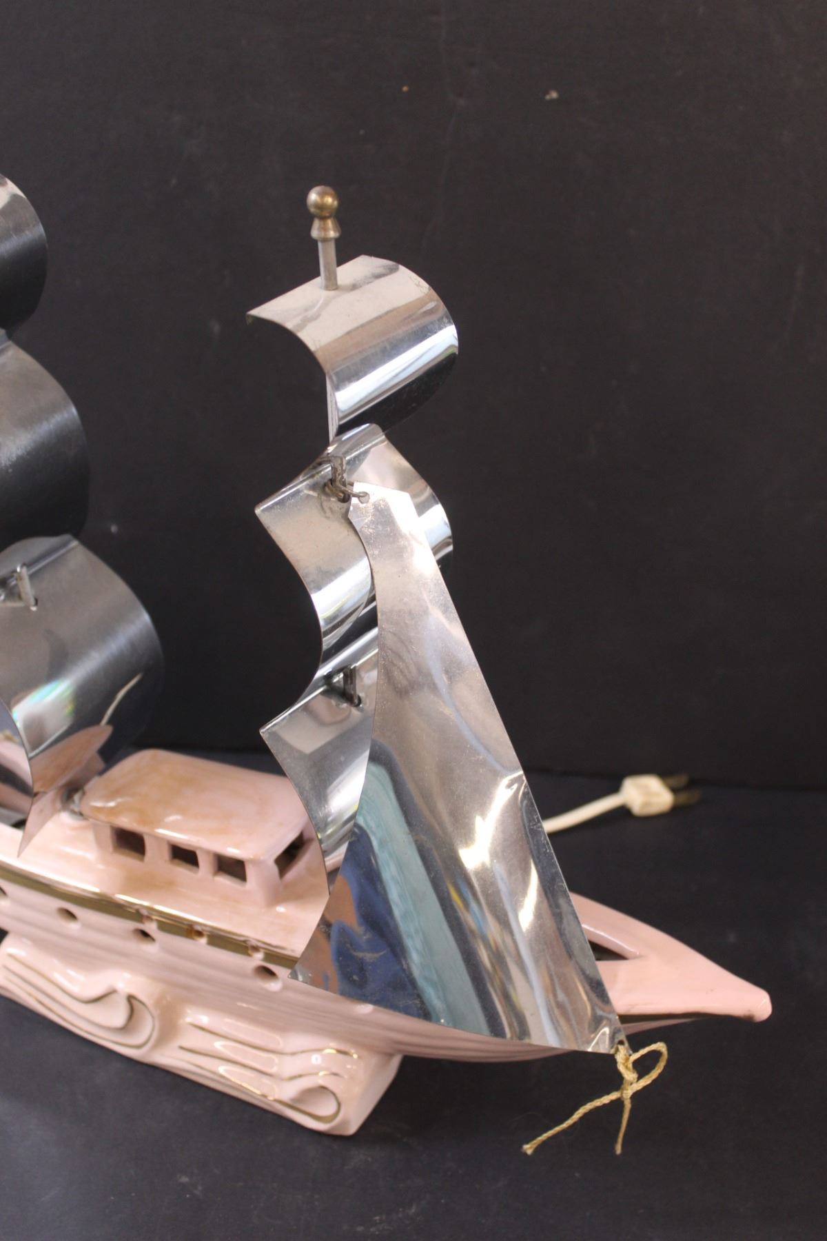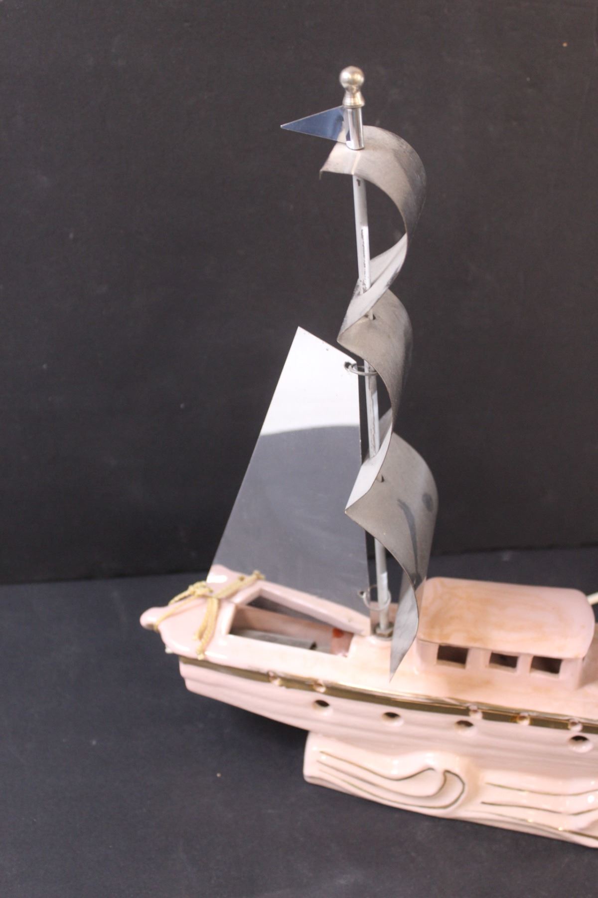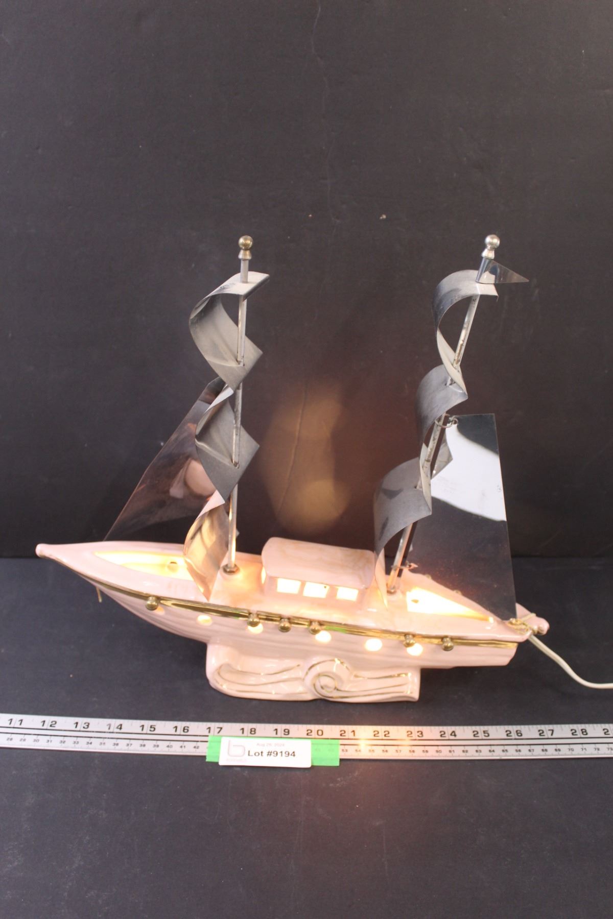 Lighted Pink Porcelain Sailboat w/Metal Sails - 16" x 14" - Works