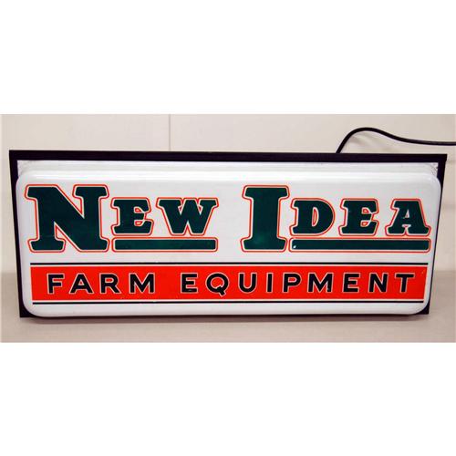 Lighted plastic New Idea sign w/cracked plastic does work. Can be hung or free standing.
