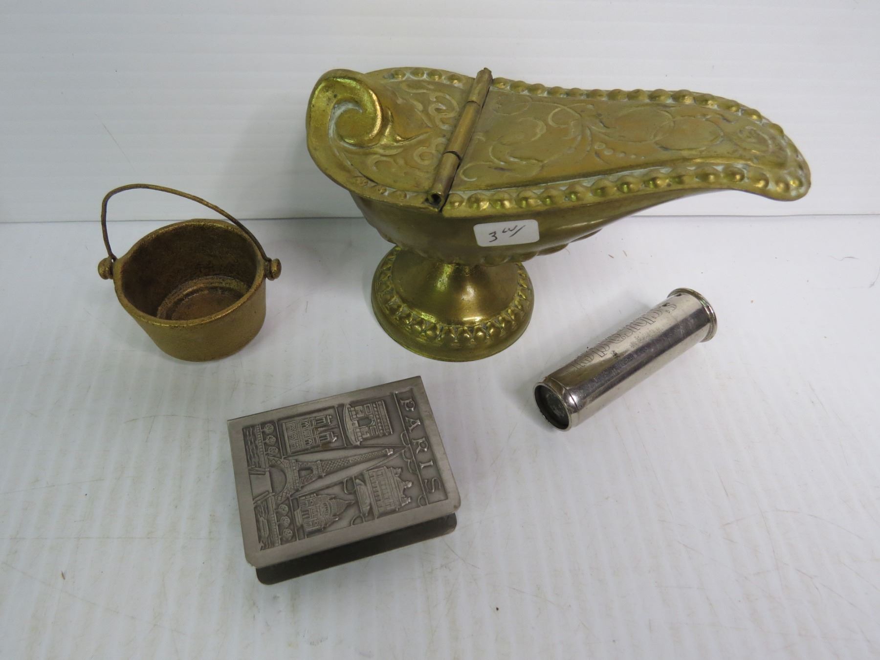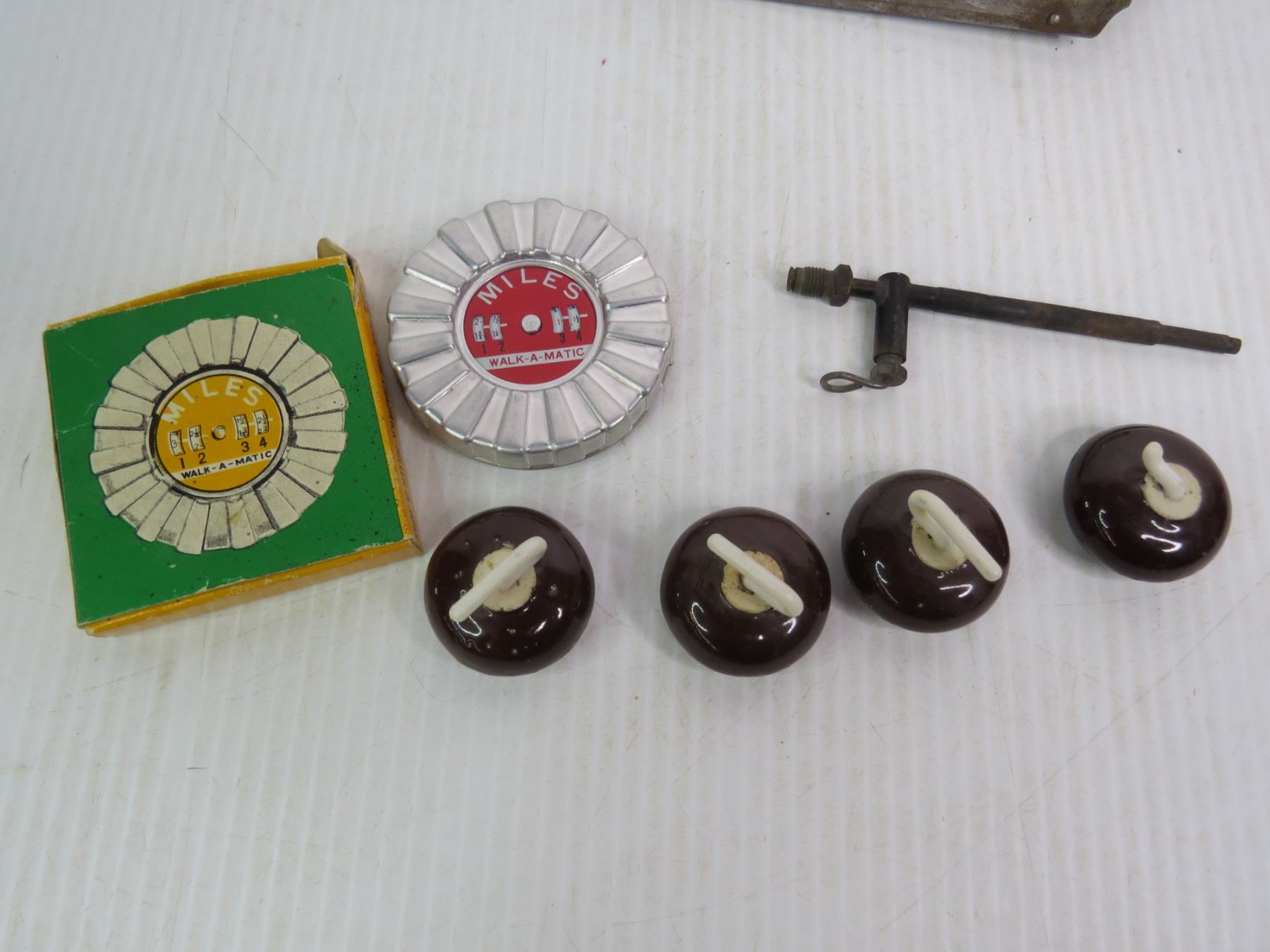Lighter w/Fish Hook Inside - Vintage Scale - Vintage Hand Pump - Auto Miles Walk a Mile - Mini Curling Rocks - Brass Spoon Holder
