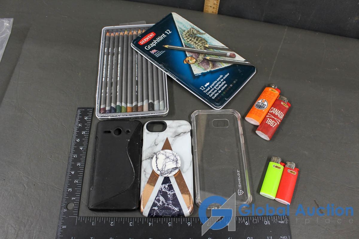 Lighters (4), Derwent Graphite Tinted Pencils Set, Various Phone Cases