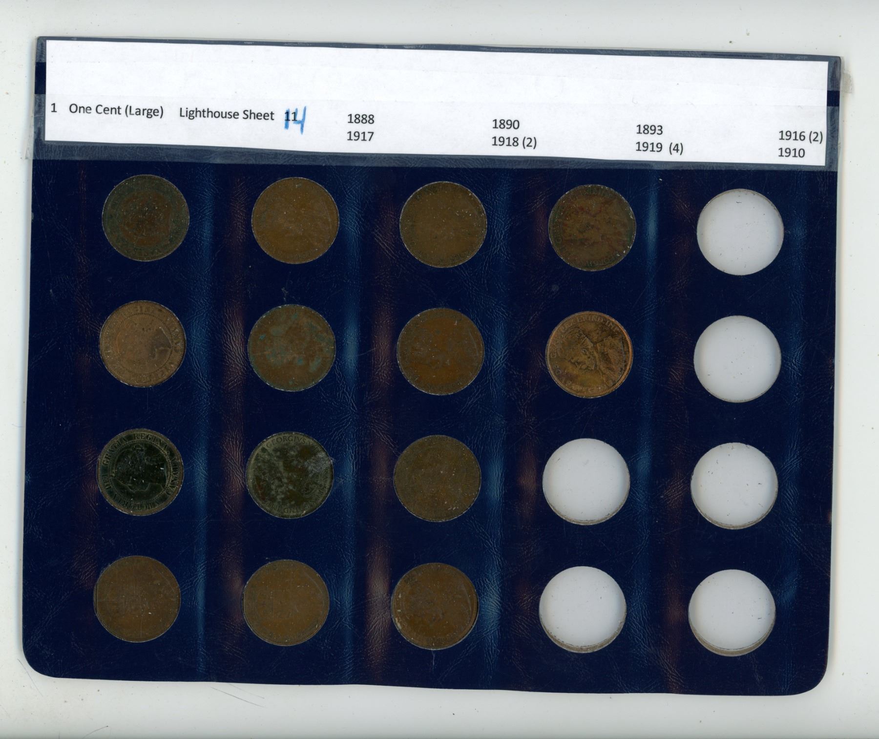 1888, 1890, 1893, 1916 (2), 1917, 1918 (2), 1919 (4), 1910, 1920