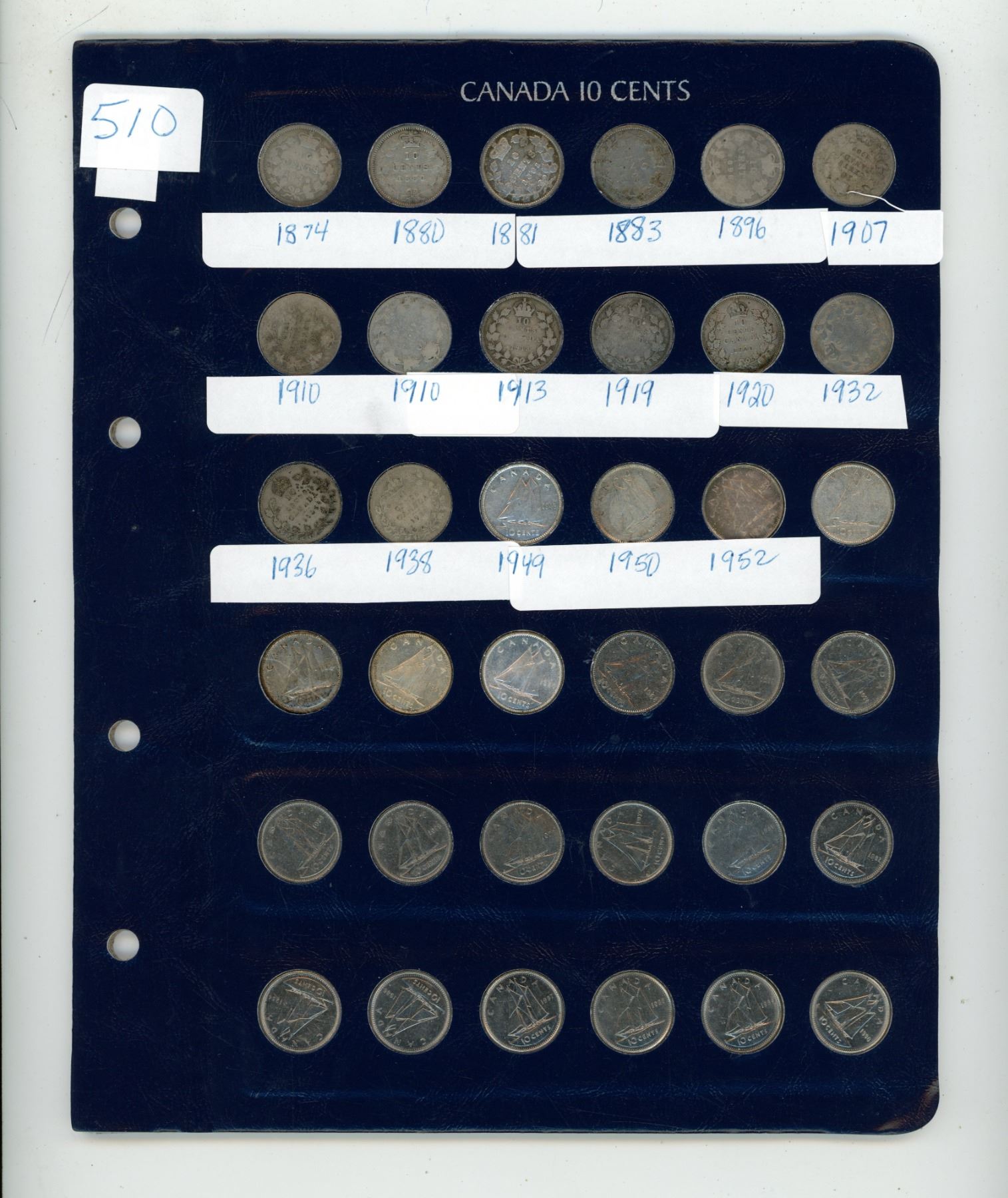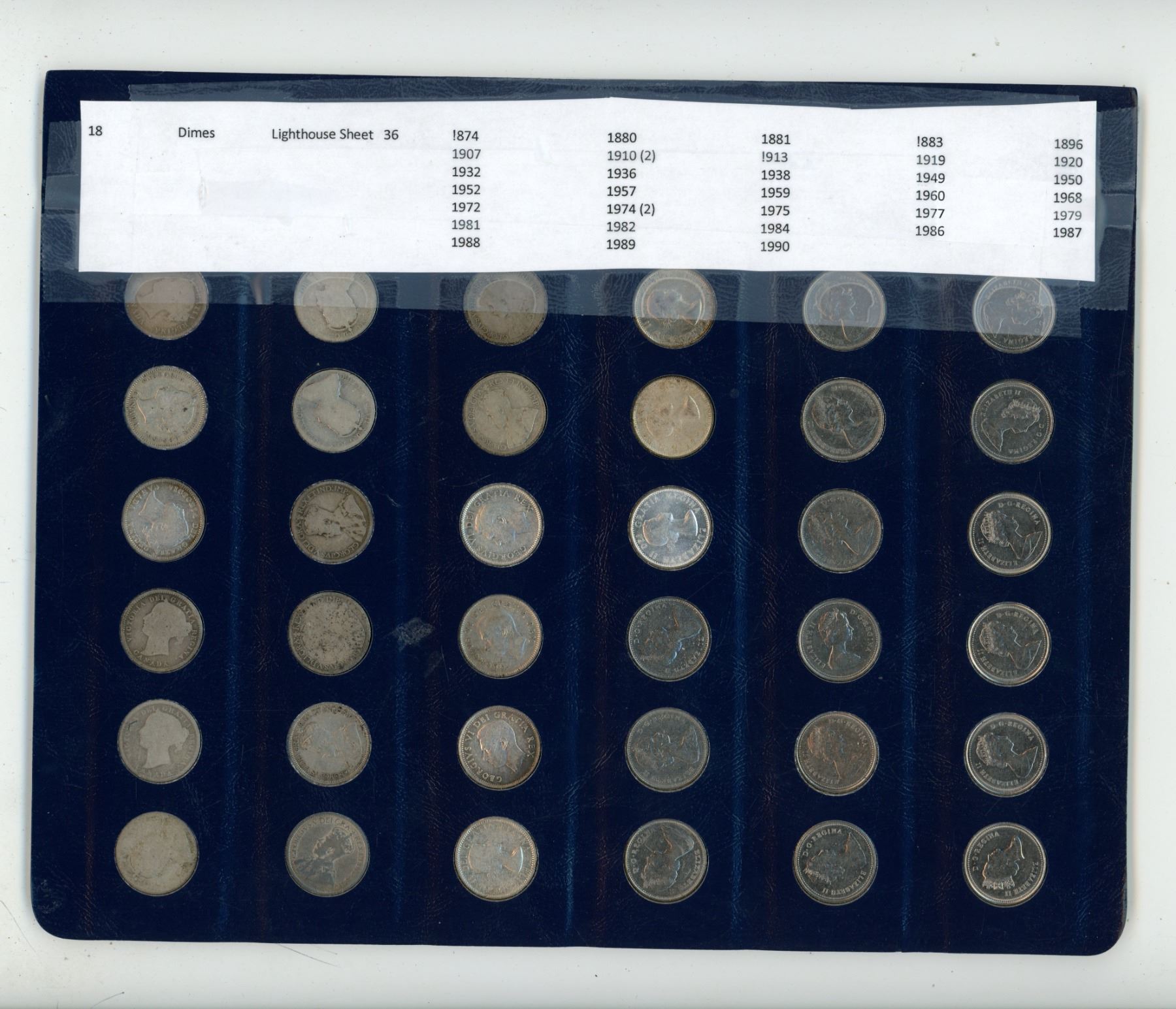 1874, 1880, 1881, 1883, 1896, 1907, 1910 (2), 1913, 1919, 1920, 1932, 1936, 1938 plus from 1940's to 1970's
