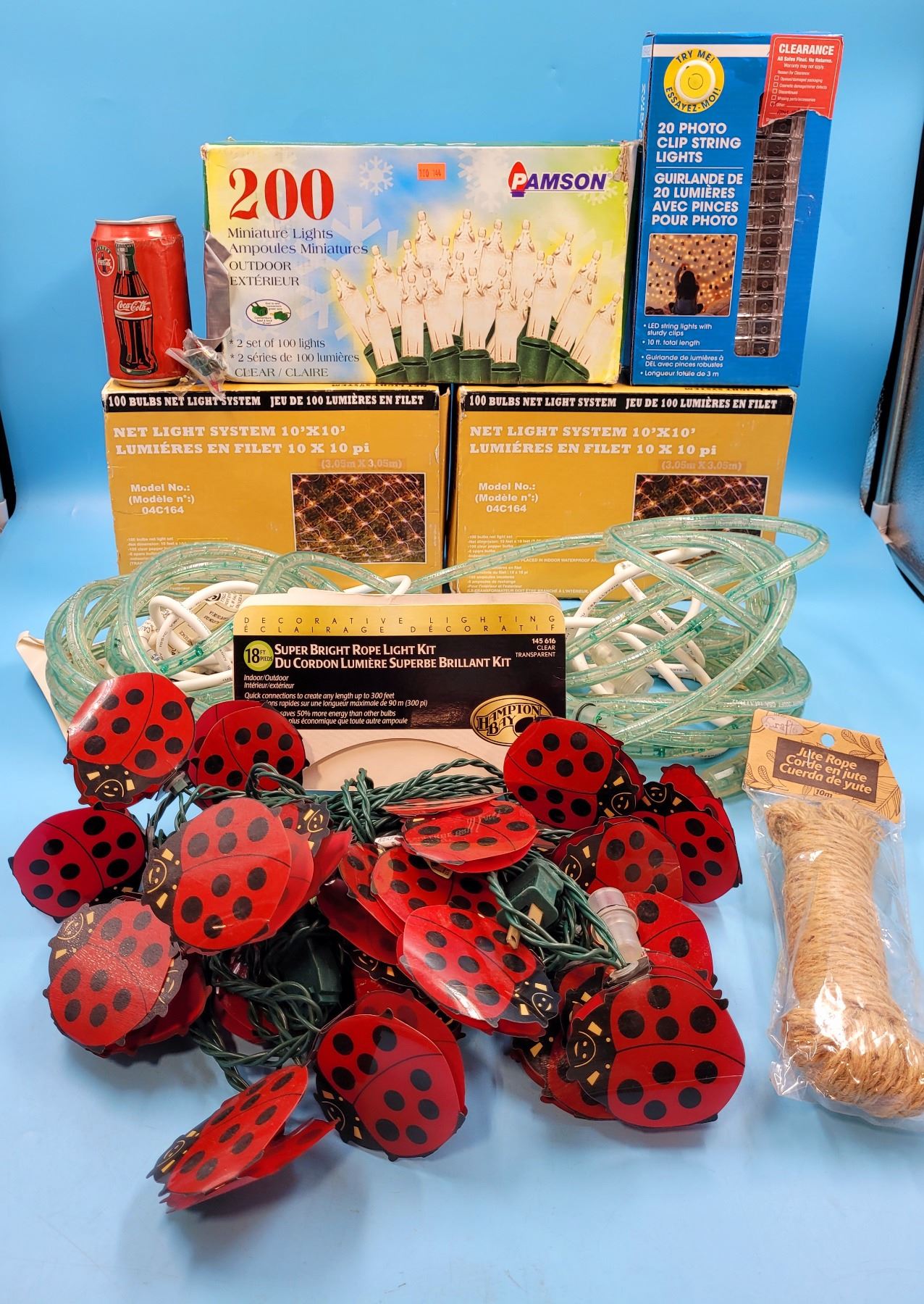 Lighting Lot w/ Ladybug String Lights, Photo Clip String Lights, Net Lights, & More