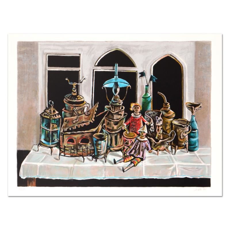 "Lightings" is a limited edition lithograph on paper, numbered hand signed by Yosl Bergner (1920-2017). Includes Certificate of Authenticity. Measures approx. 28.5" x 21" (with border), 25.5" x 18.5" (image).