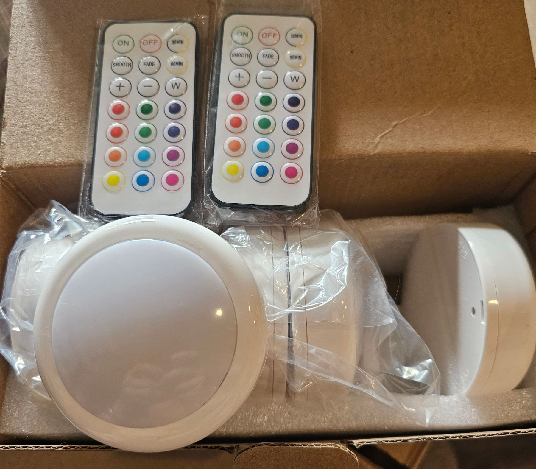 6 Puck Ligths, Battery-Powered With 2 Remotes, Makes Using Super Easy, New Condition