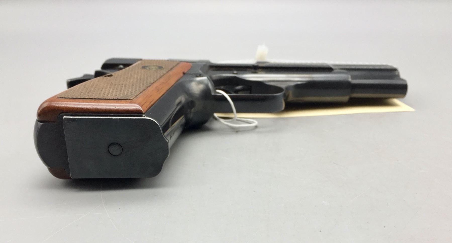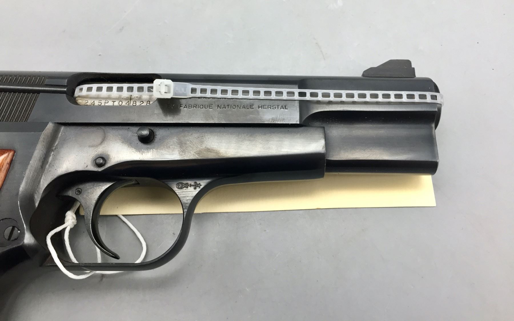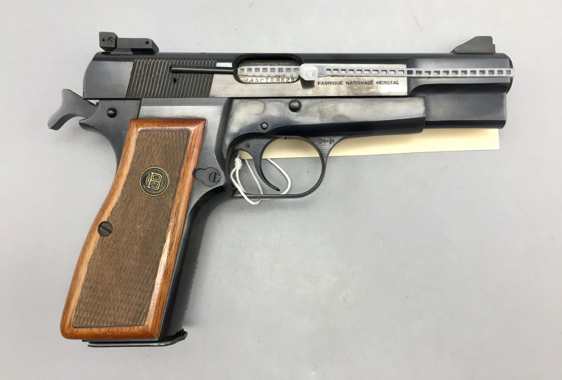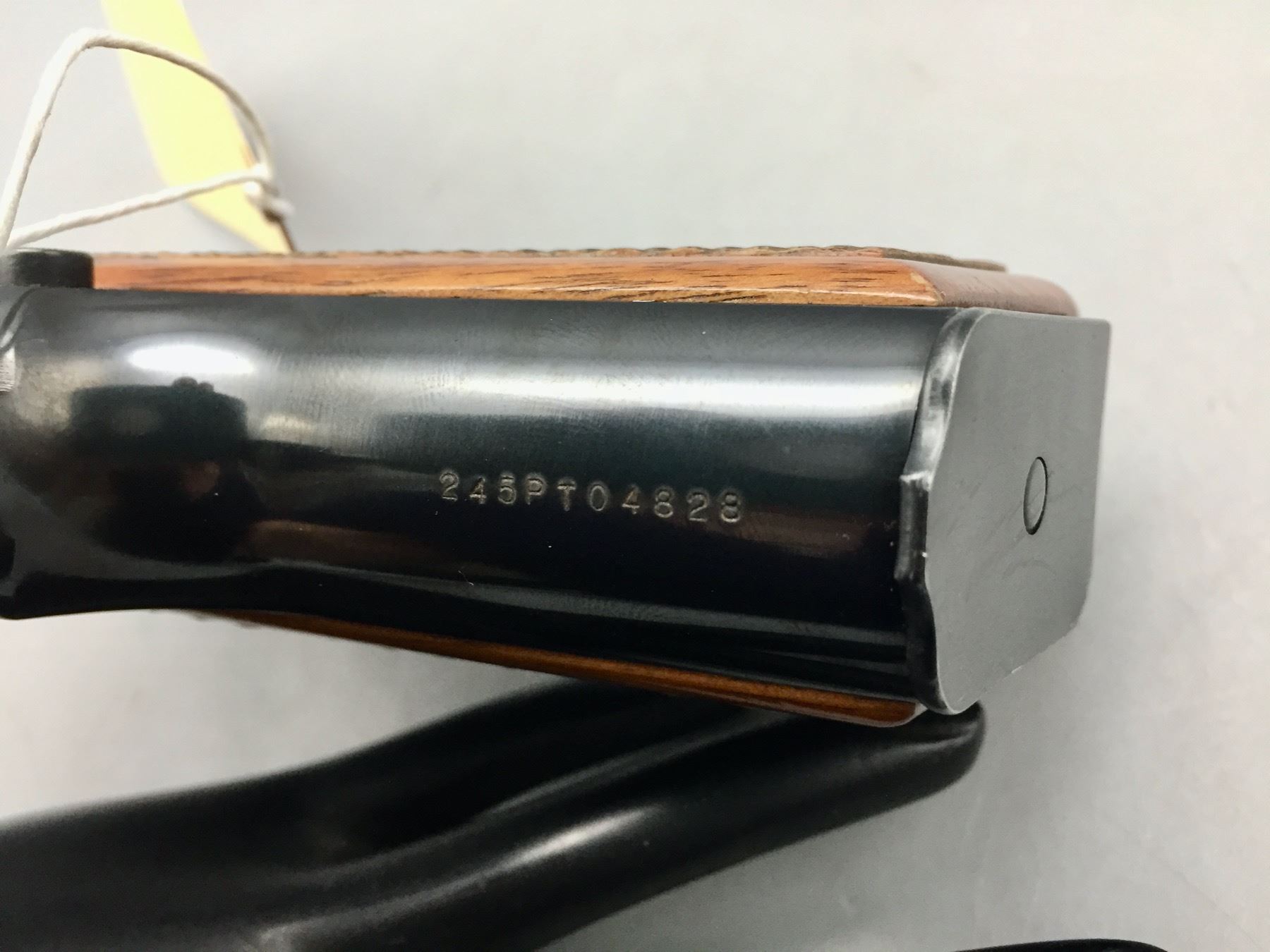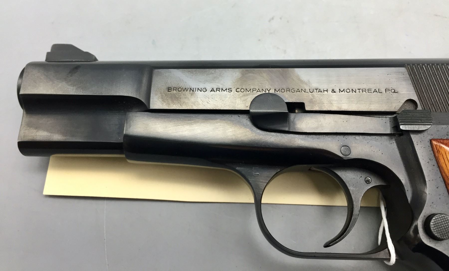 Description: Offered for sale in this lot is a Browning Hi Power 9mm pistol with wood grips in like new condition. Includes a padded pistol case. Maker: Browning. Approx. Age: 1986. Serial No. 245PT04828. Size: Barrel measures 4-5/8 inches long. Condition: Very good to excellent for its age, minor wear expected. Please look closely at the pictures - they are an important part of our description. Shipping: There will be a $15 handling, packaging fee for shipping this lot. The actual cost of postage will be added on top of that. *****This firearm requires an FFL Transfer*****