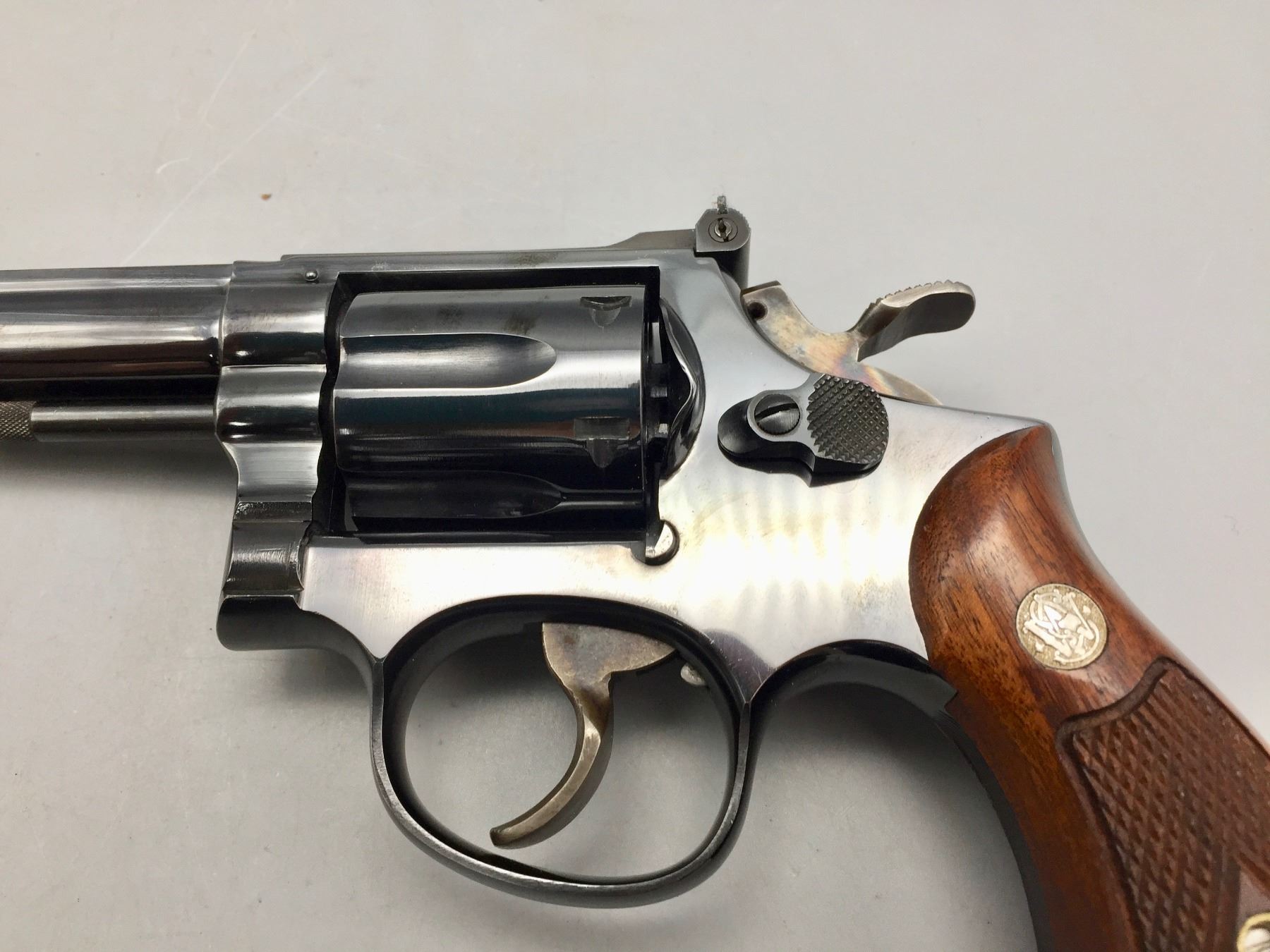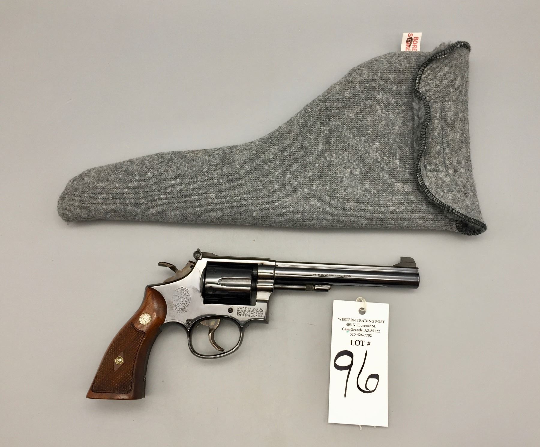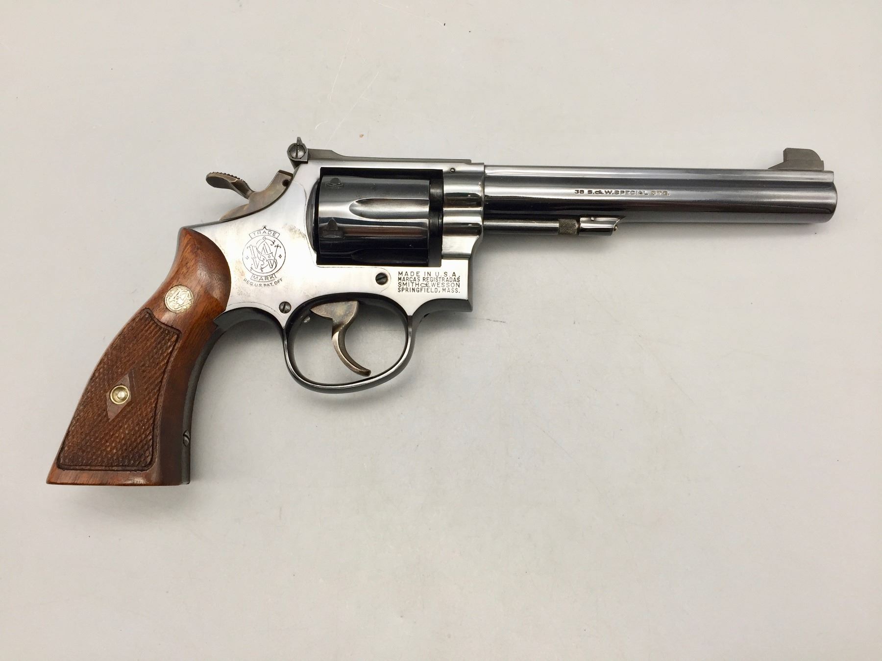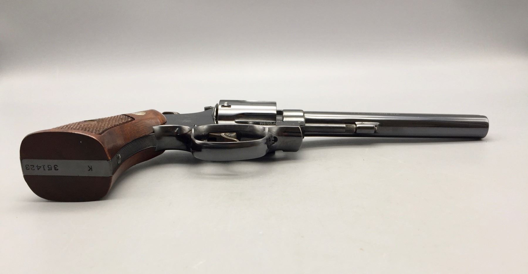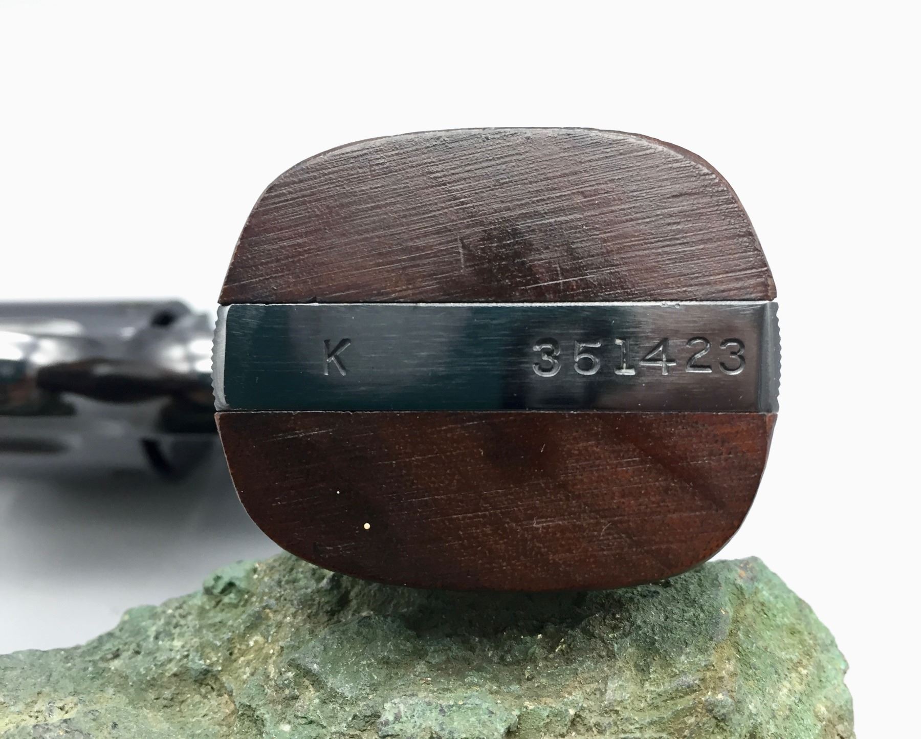 Description: Offered for sale in this lot is a Smith and Wesson, Model 14, .38 special double action revolver. This revolver features a blued steel finish and checkered grips. It appears to be in unfired, like new, excellent condition! Maker: Smith and Wesson, Springfield, Mass, Approx. Age: 1959 based on serial # 351423. Size: 6” barrel. .38 spcl cal. Condition: Very good for its age, minor wear expected (99% condition). Please look closely at the pictures - they are an important part of our description. Shipping: There will be a $10 handling / packaging fee for shipping this lot. The actual cost of postage will be added on top of that. *****This firearm requires an FFL Transfer*****