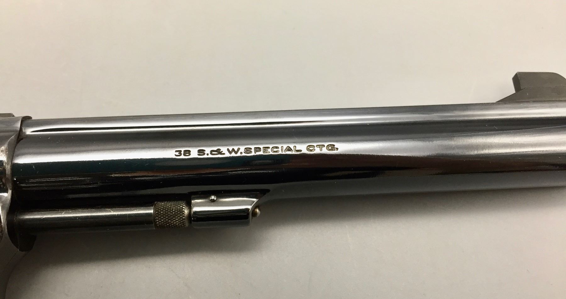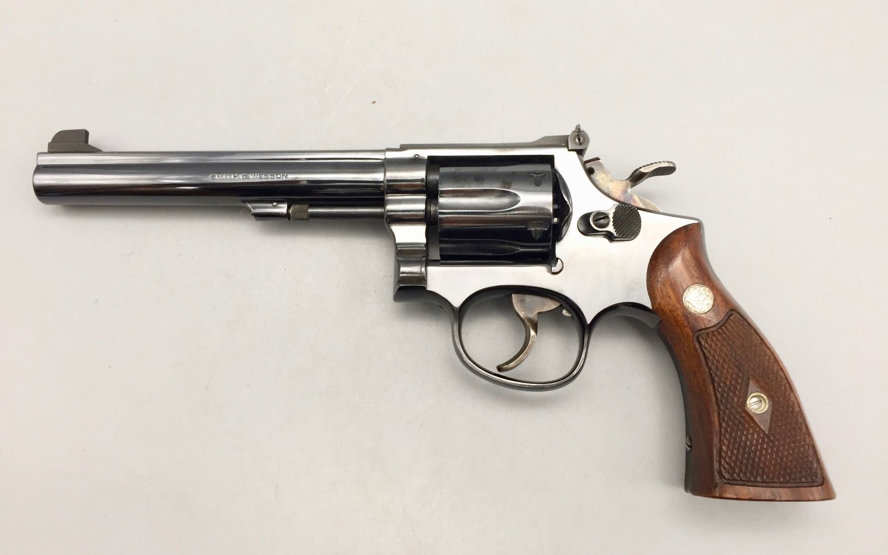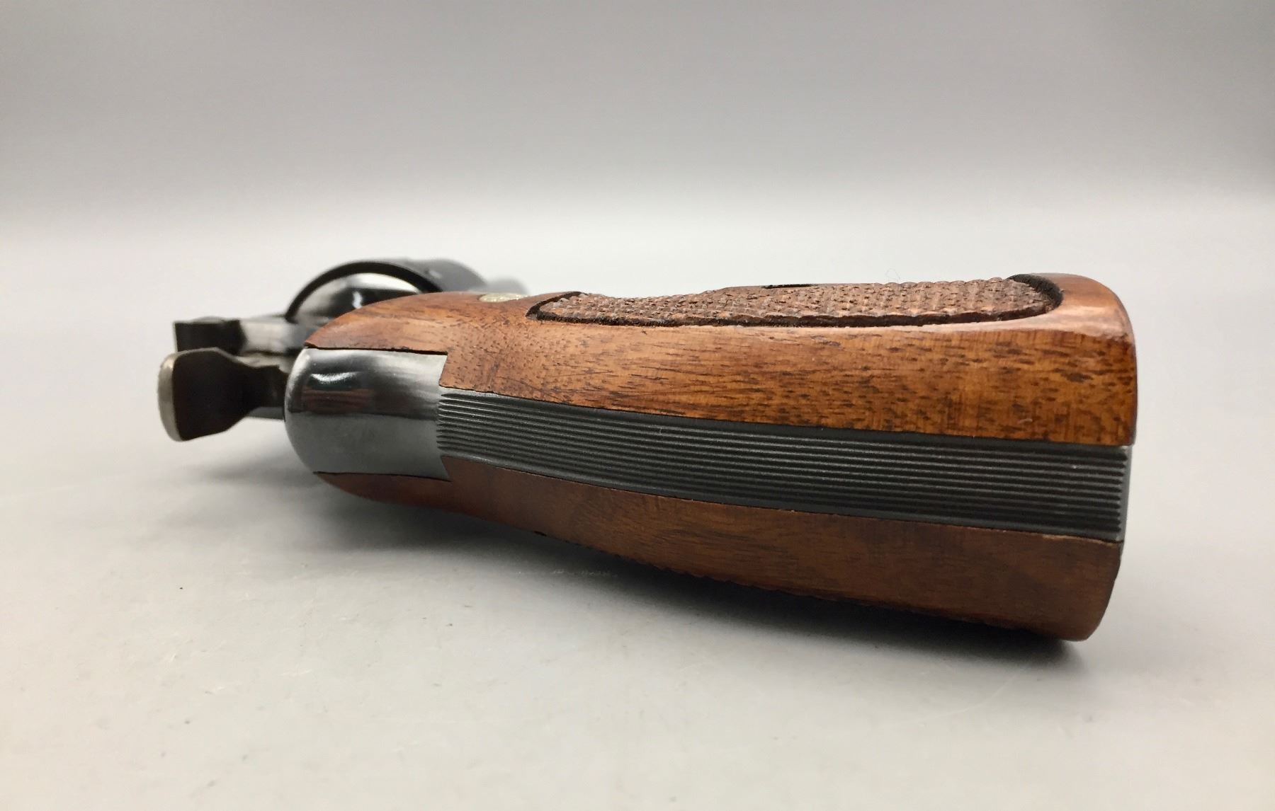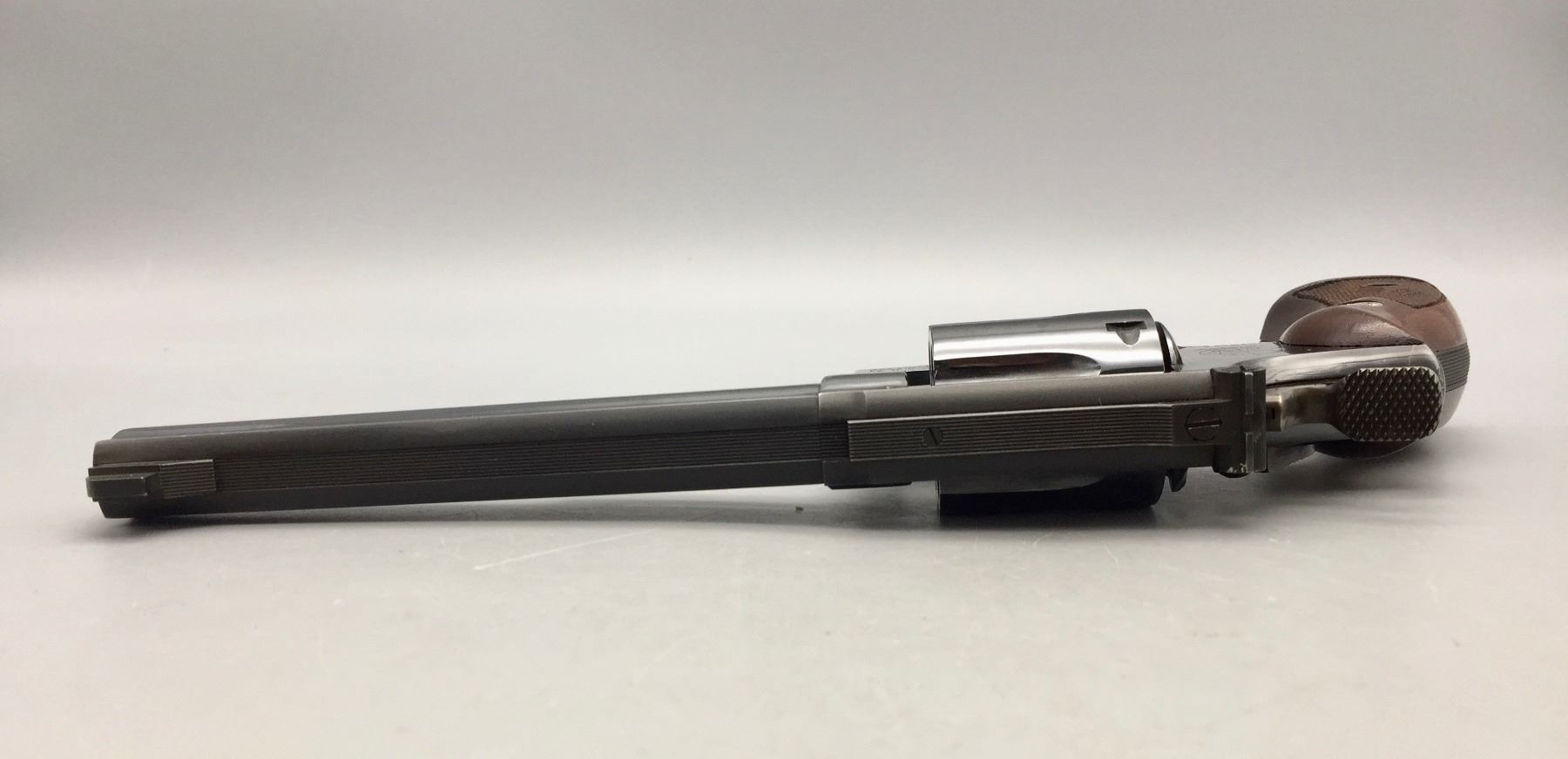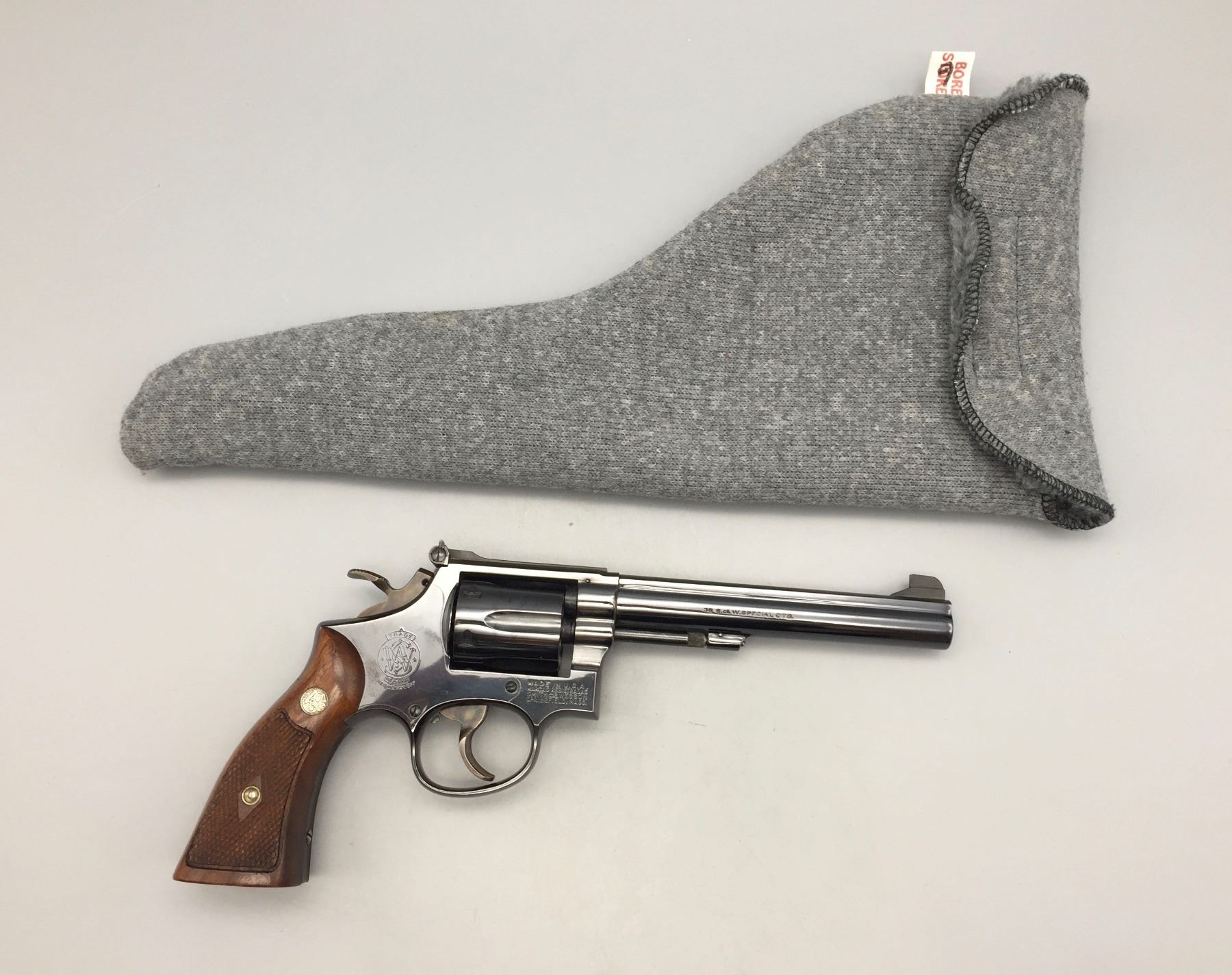 Description: Offered for sale in this lot is a Smith and Wesson, Model 14, .38 special double action revolver. This revolver features a blued steel finish and checkered grips. It appears to be in unfired, like new, excellent condition! Maker: Smith and Wesson, Springfield, Mass, Approx. Age: 1959 based on serial # 351423. Size: 6” barrel. .38 spcl cal. Condition: Very good for its age, minor wear expected (99% condition). Please look closely at the pictures - they are an important part of our description. Shipping: There will be a $10 handling / packaging fee for shipping this lot. The actual cost of postage will be added on top of that. *****This firearm requires an FFL Transfer*****