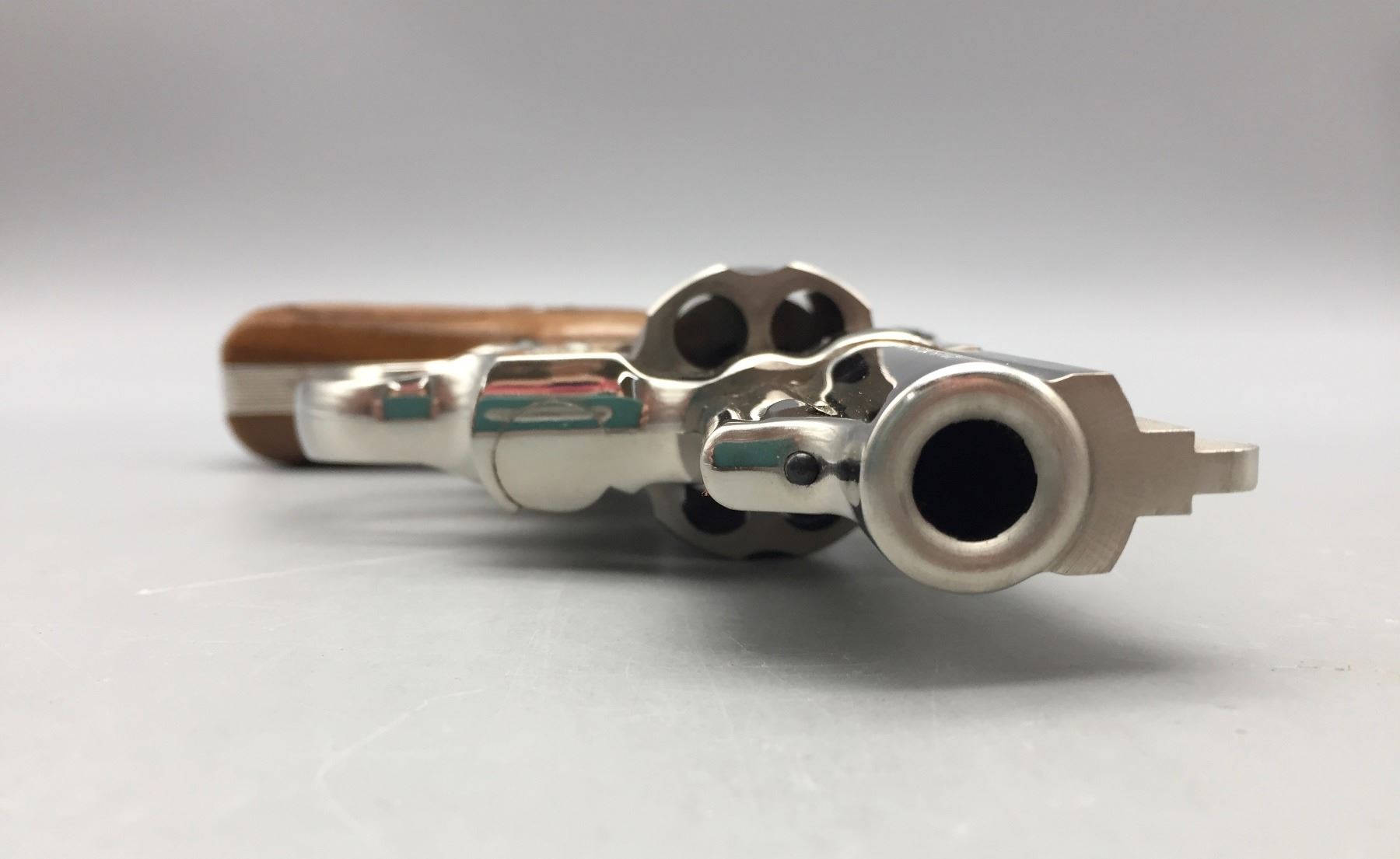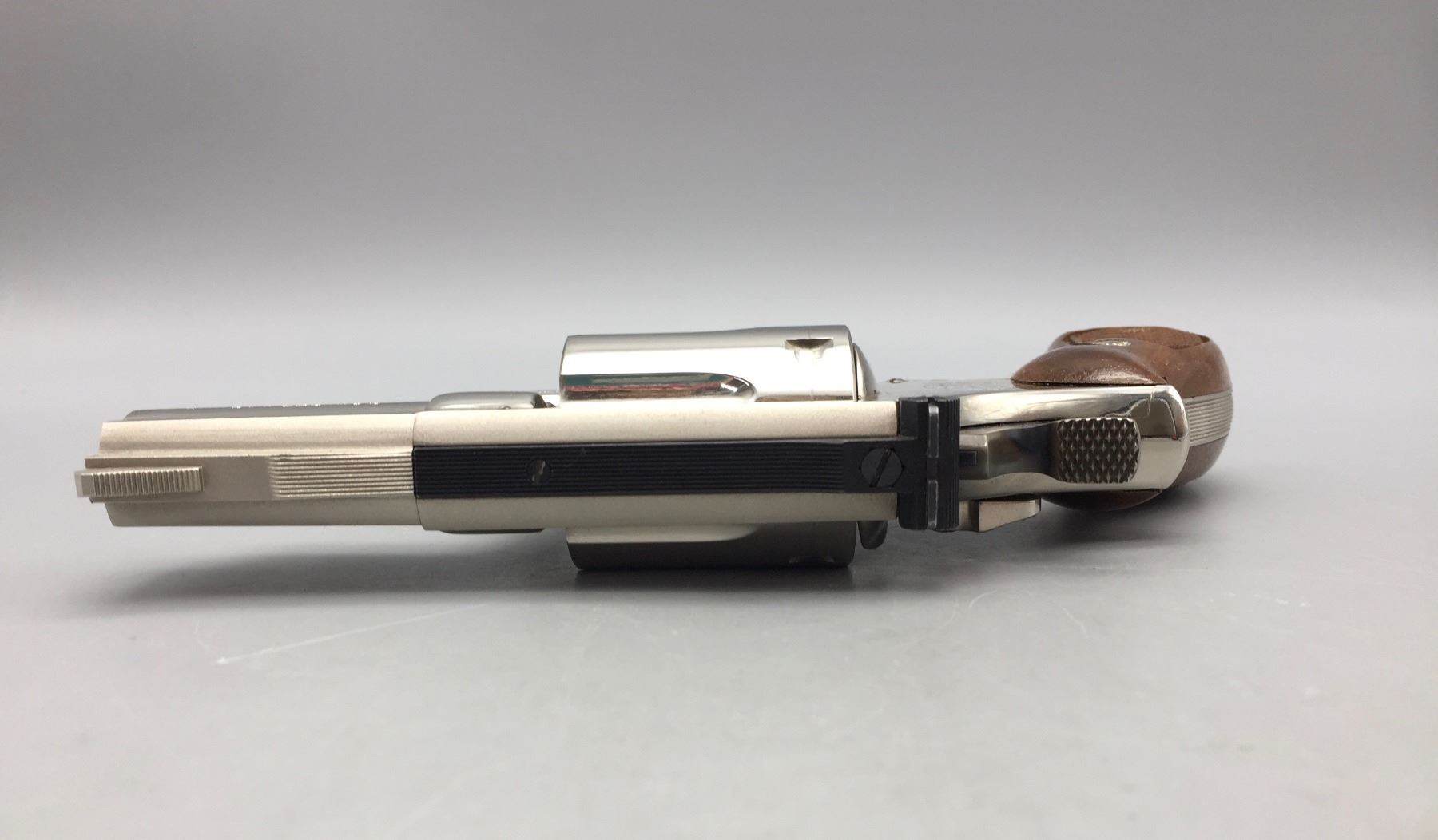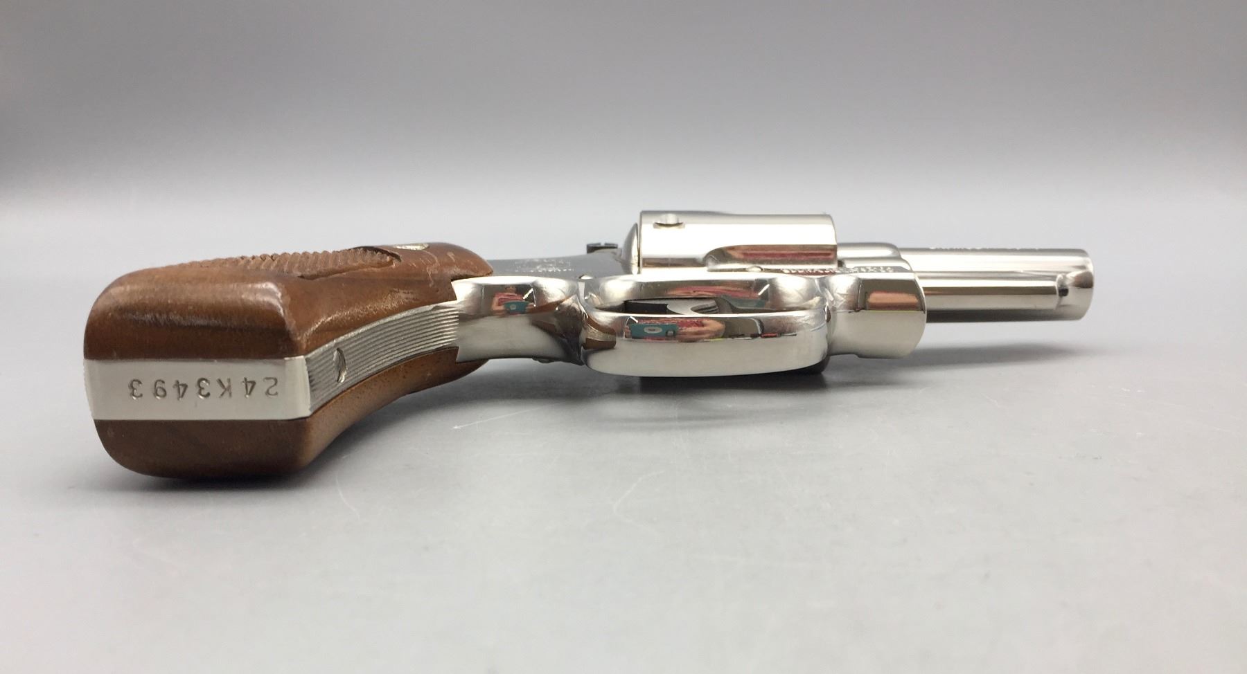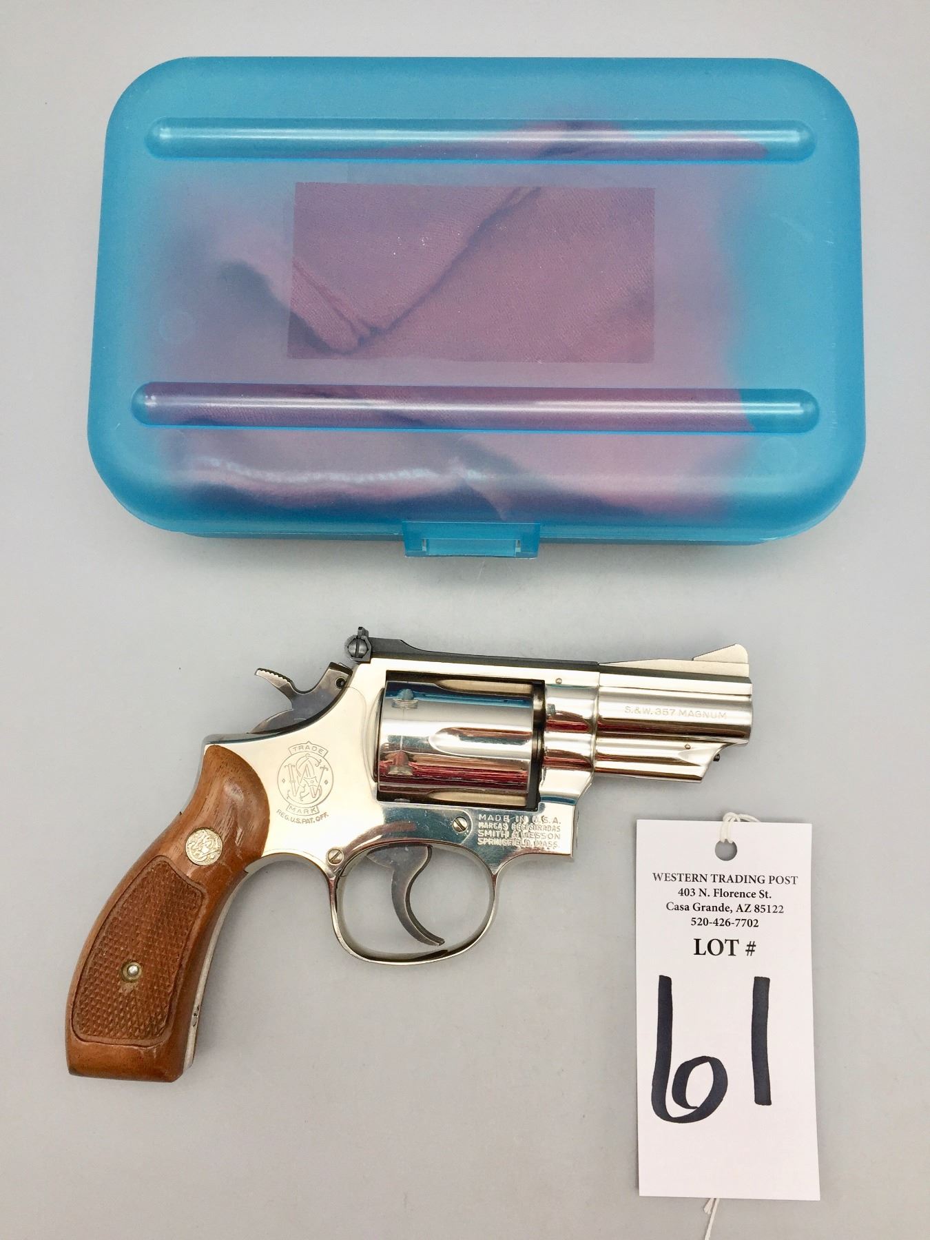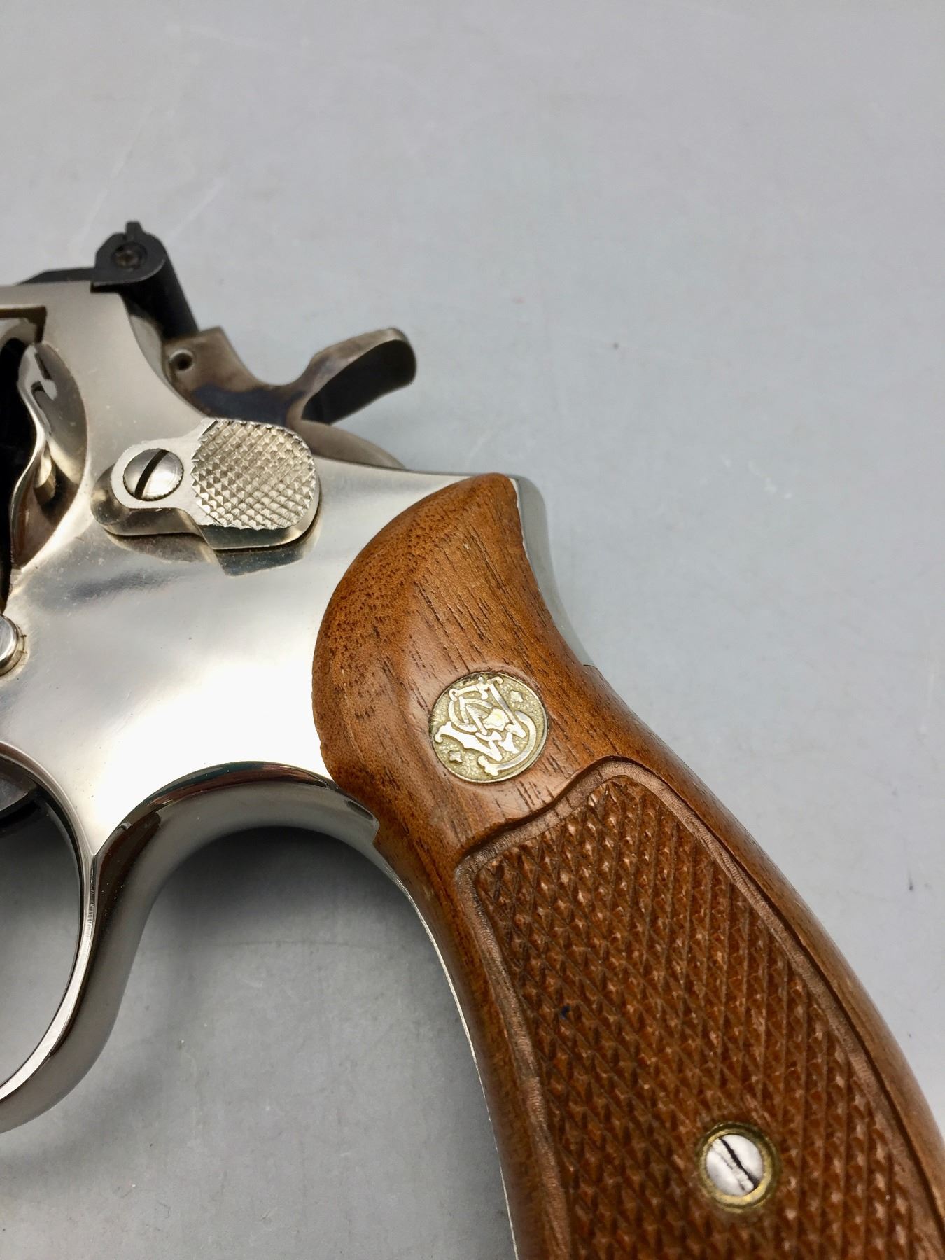 Description: Featured for sale in this lot is a Smith and Wesson Model 19 Revolver in .357 cal.. This revolver features a nickel finish, with 2” barrel and nice walnut grips. It appears to be in unfired, like new condition! Maker: Smith and Wesson., Springfield, Mass. Approx. Age: 1977. Size: 2” barrel. .357 Cal. Condition: Very good for its age, minor wear expected. Please look closely at the pictures - they are an important part of our description. Shipping: There will be a $10 handling / packaging fee for shipping this lot. The actual cost of postage will be added on top of that. *****This firearm requires an FFL Transfer*****