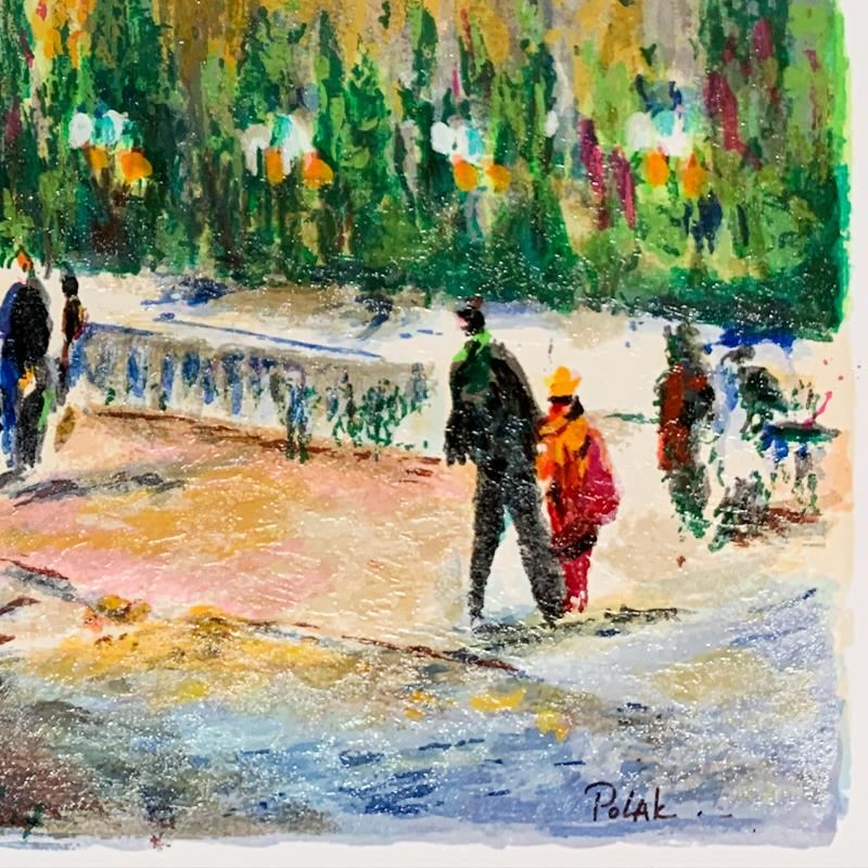 "Like a Parisian Celebration" is a limited edition serigraph on paper by Dimitri Polak (1922-2008). It is numbered and hand signed and includes a letter of authenticity. Measures approximately 12.5" x 15" (image).