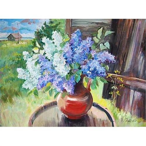 <tr><td>Title:"Lilac in the Landscape" oil in impressionism</td></tr>