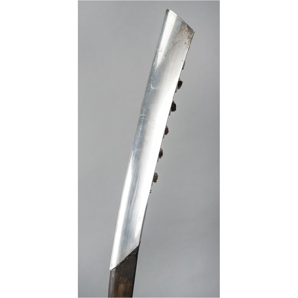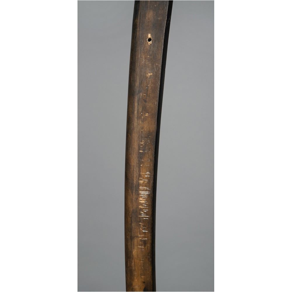 The torch bears two mounting holes and is in well-used condition, with singeing and scuffs to the blade, and notable burn marks and scrapes to the handle, which bears a heat-crack to where the burner meets the wood; given the torch’s strikingly rugged design, none of the mentioned ‘flaws,’ with the exception of the custom mounting holes, should be deemed as imperfections, nor do they detract from its overall awesome impression. Accompanied by the original 'Torchbearer Proof' certificate of authenticity, dated January 28, 1994, issued to Wenche Spidsberg for a relay run in the town of Gjøvik. The certificate is mounted and framed with a photo of Spidsberg carrying the torch to an overall size of 11.25Ë x 25.5Ë.