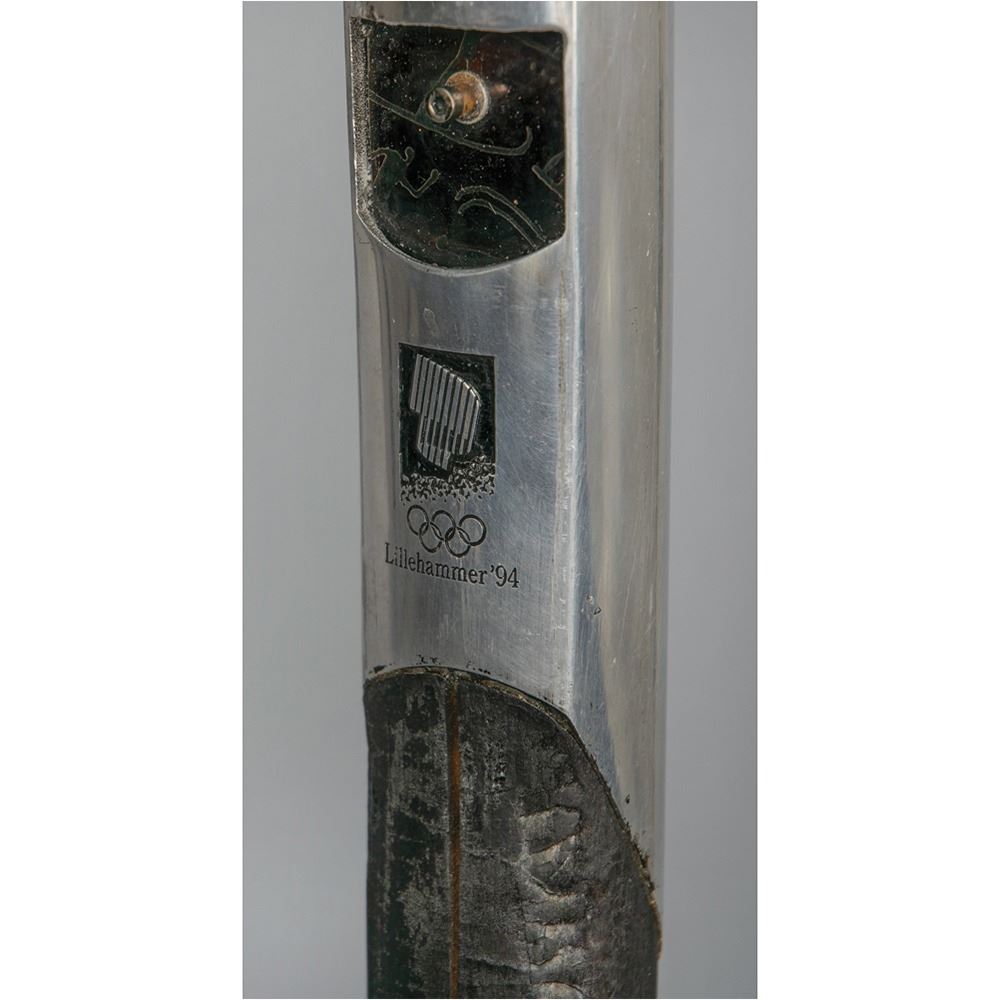 The flame of the XVIIth Olympic Winter Games was lit in Olympia, Greece, on January 16, 1994, and, with the use of 350 torches and 6,916 torchbearers, traveled 18,000 kilometres (11,000 miles) over the course of 27 days to the Lysgårdsbakkene Ski Jumping Arena in Lillehammer, Norway. It was the sixth Winter torch relay to have more than one route, which included a visit to the Arctic Circle and the premiere instance of a torch being passed between two parachutists. Before Prince Haakon lit the cauldron at the opening ceremony, Stein Gruben, in spectacular and fiery fashion, astounded spectators when he launched from the ski jump with torch in hand. Nearly the height of a human being, this massive, hugely desirable Olympic artifact holds the unique distinction as being the longest and thinnest torch in Olympic history—the first Lillehammer torch that we have ever offered.