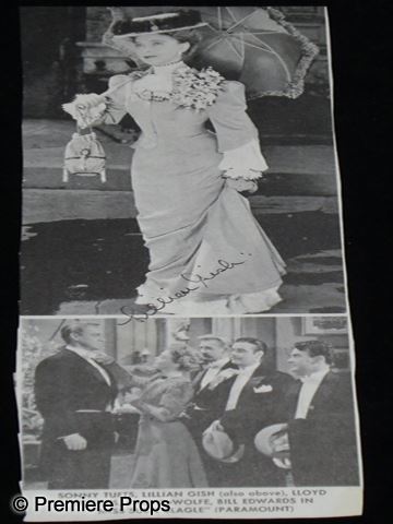 Lillian Gish Autographed Photo - A signed black and white photo of her in Miss Susie Slagle from a vintage celebrity magazine. 3" x 8"