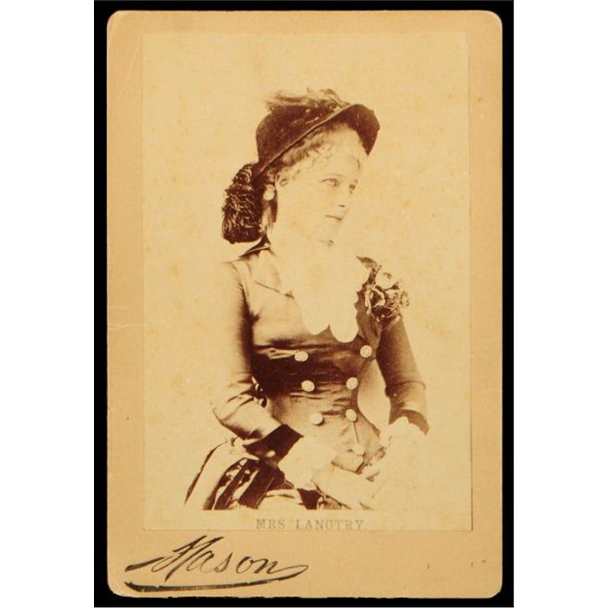 Lilly Langtry Cabinet Card. Marked "Mason" Lower Left Hand Corner. Measures 4 1/4" x 6 1/4".