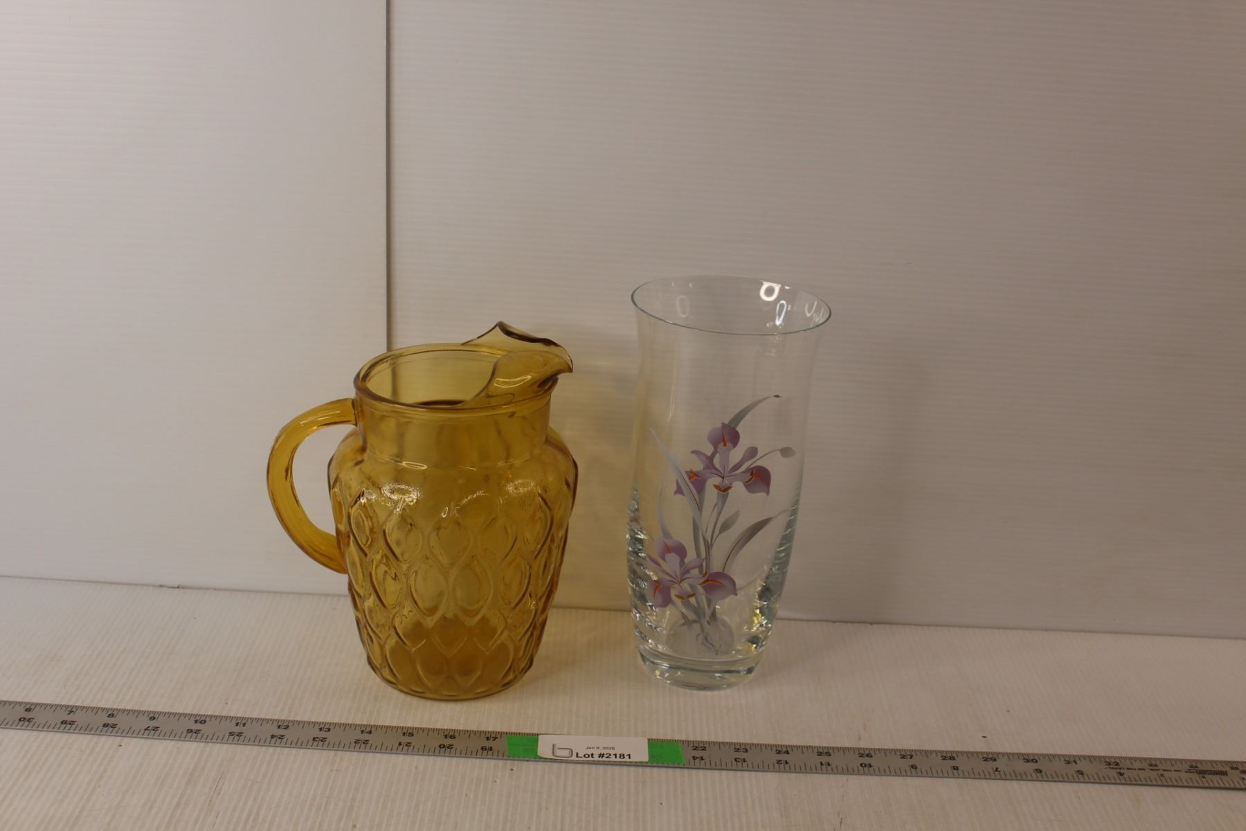 Lily Bohemian Crystal Vase & Amber Glass Pitcher Up to 10" Tall