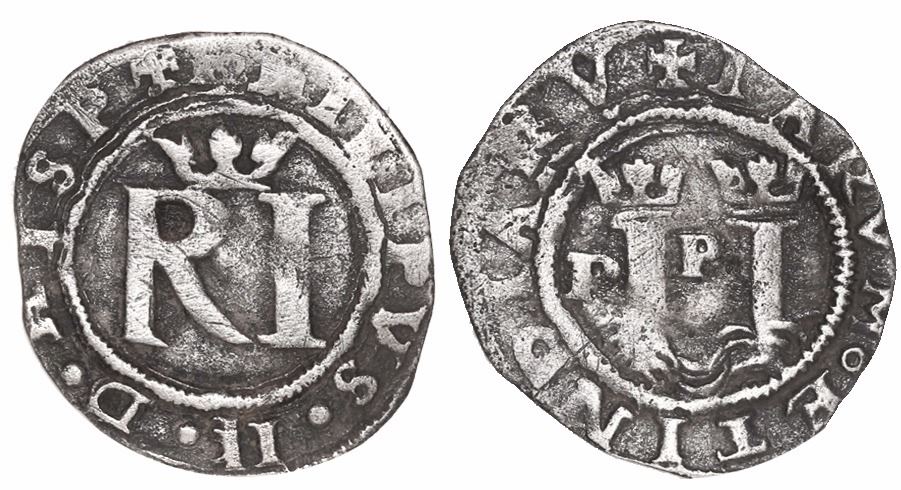 Lima, Peru, 1/2 real, Philip II, assayer R (Rincon) to left, legends HISP / IARVM. 1.27 grams. Good full details (including legends) on both sides, nicely toned VF+, minor surface porosity.
