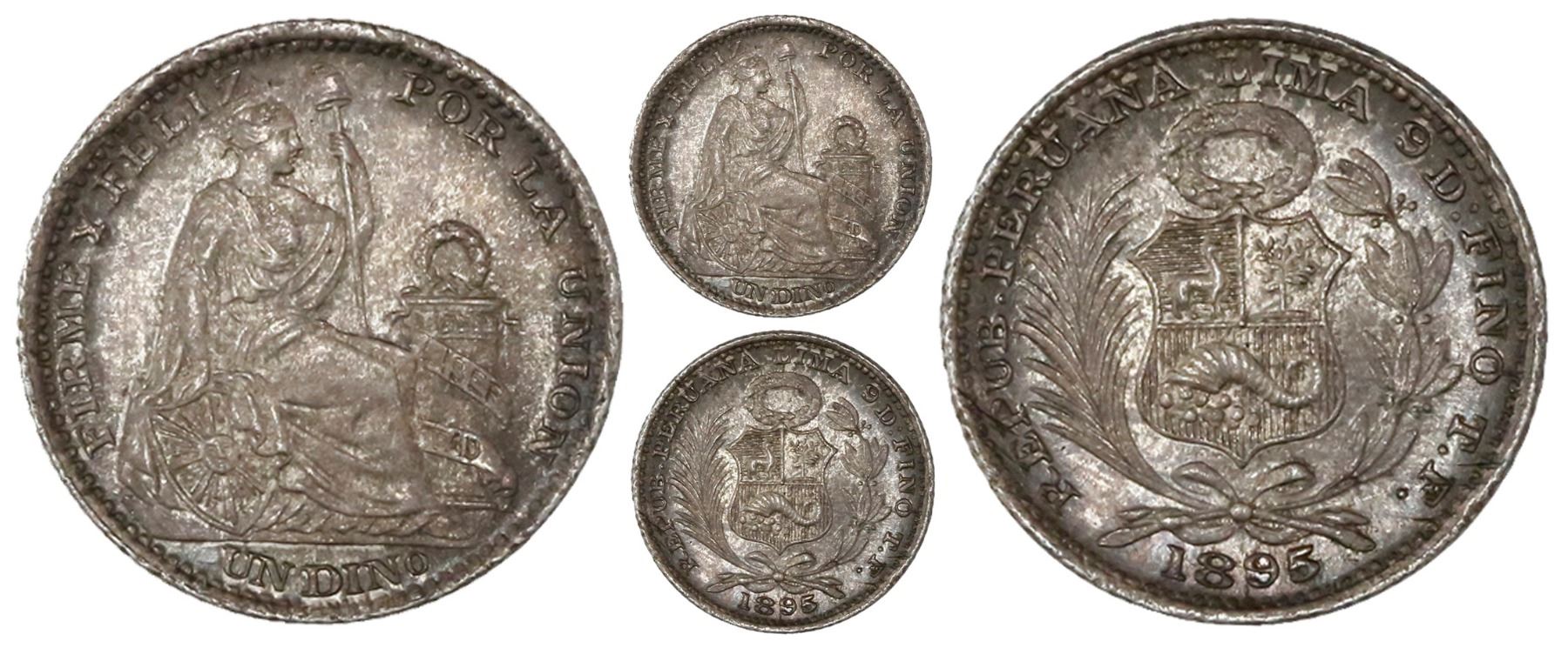 Lima, Peru, 1 dinero, 1895TF, NGC MS 64. KM-204.2. Choice grade with no marks or wear, light speckled toning over muted luster, tied with one other for second finest in NGC census behind a single MS 65. NGC #4724466-006.