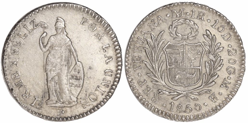 Lima, Peru, 1 real, 1850MB, normal PERUANA.