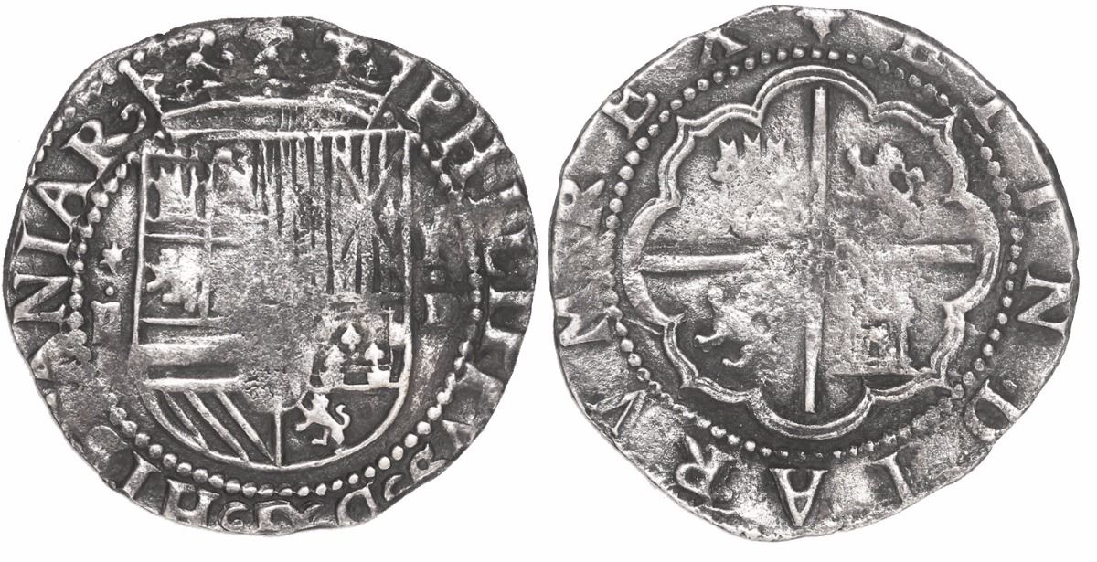Lima, Peru, cob 2 reales, Philip II, assayer Diego de la Torre, *-ii to left, P•D to right.