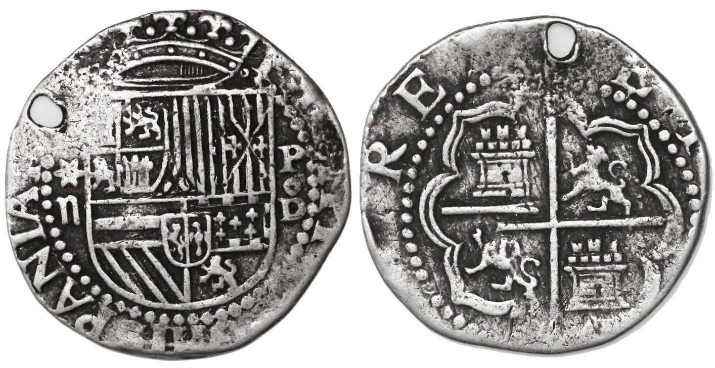 Lima, Peru, cob 2 reales, Philip II, assayer Diego de la Torre, *-ii to left, P-oD to right.