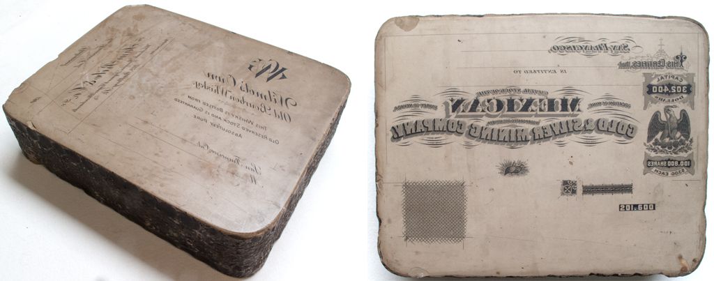 Milmot's Own Old Bourbon Whiskey. San Francisco, California. On other side if Mexican Gold & Silver Mining Company (Virginia City). This plate is measures 10" x 9" x 2 1/2". You have to see if and lift it for yourself! City: [/b]Virginia CityCounty: StoreyState: NV