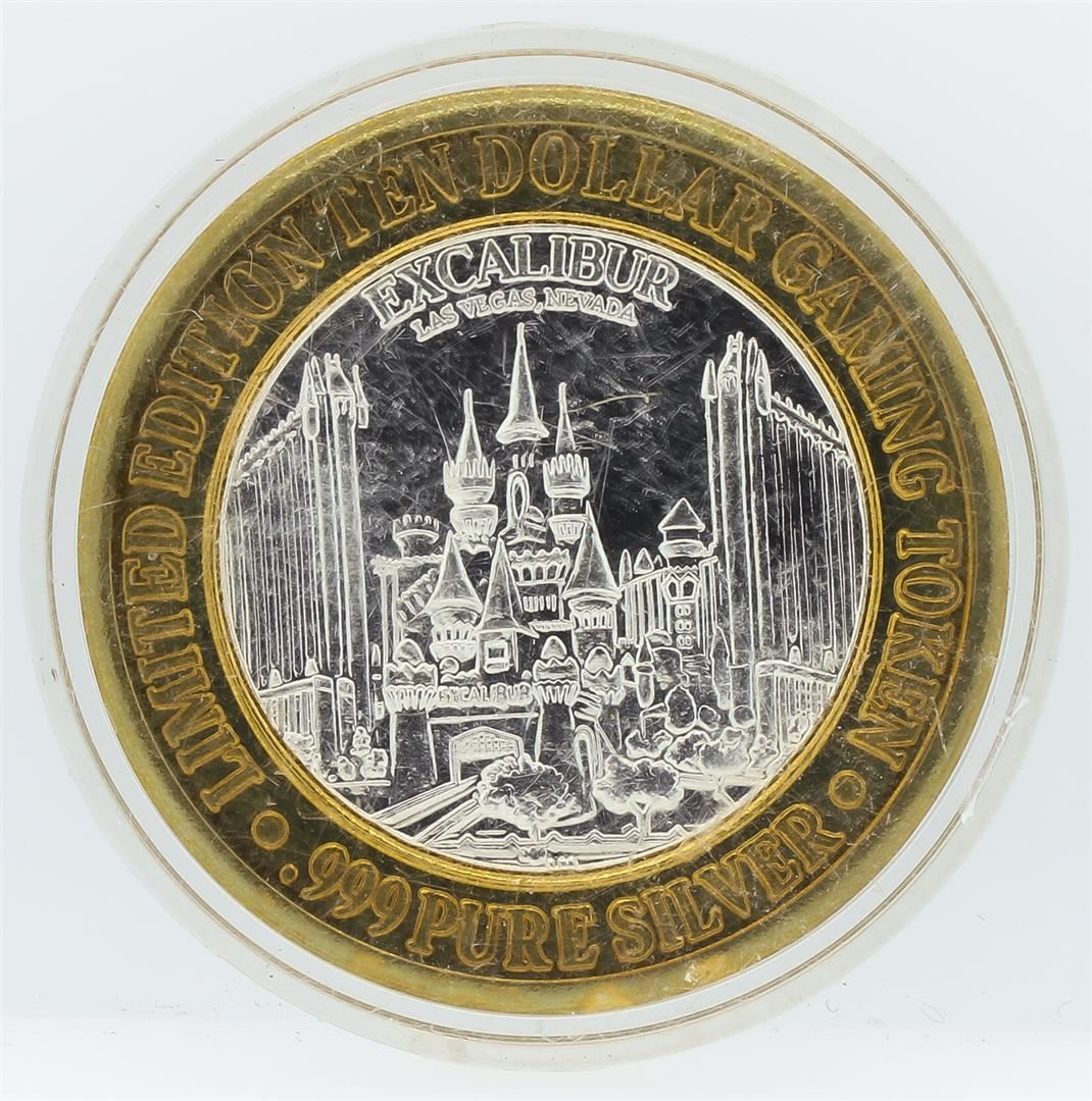 One Limited Edition $10 Las Vegas .999 Silver Gaming Token. Excalibur. .999 pure silver.