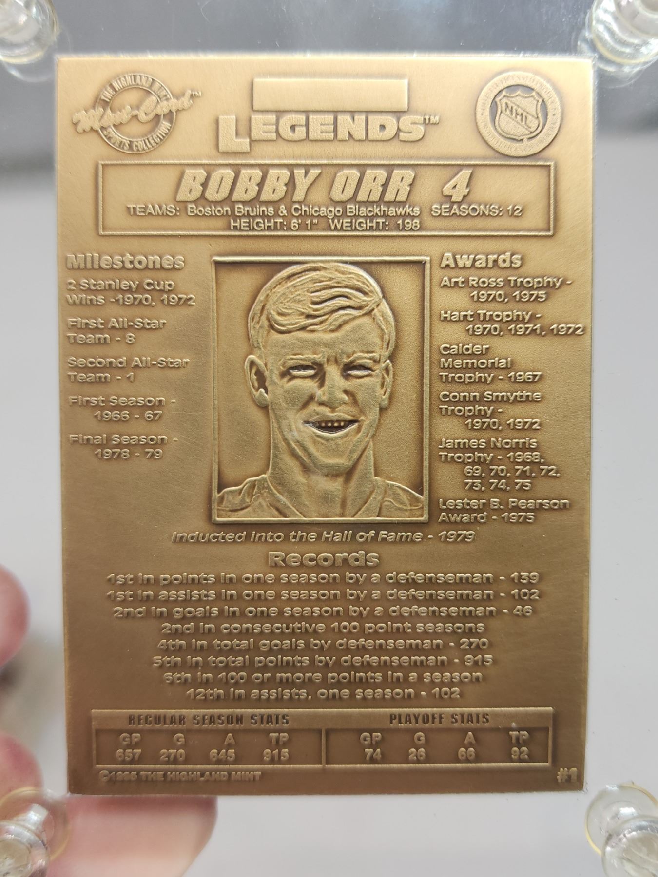 Limited Edition #1586 - Bronze Mint hockey card - Bobby Orr - Autographed, c/w certificate of authenticity
