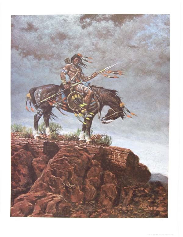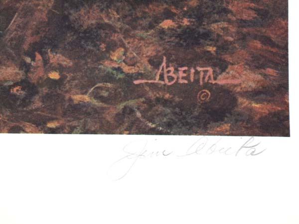 Limited Edition Abeita Signed & Numbered Print. Born in Crownpoint, New Mexico, Jim Abeita attended the American Academy of Art in Chicago. He has won awards in major art shows. This piece depict a native American horseman and has a visual measurement of 16'' x 20''