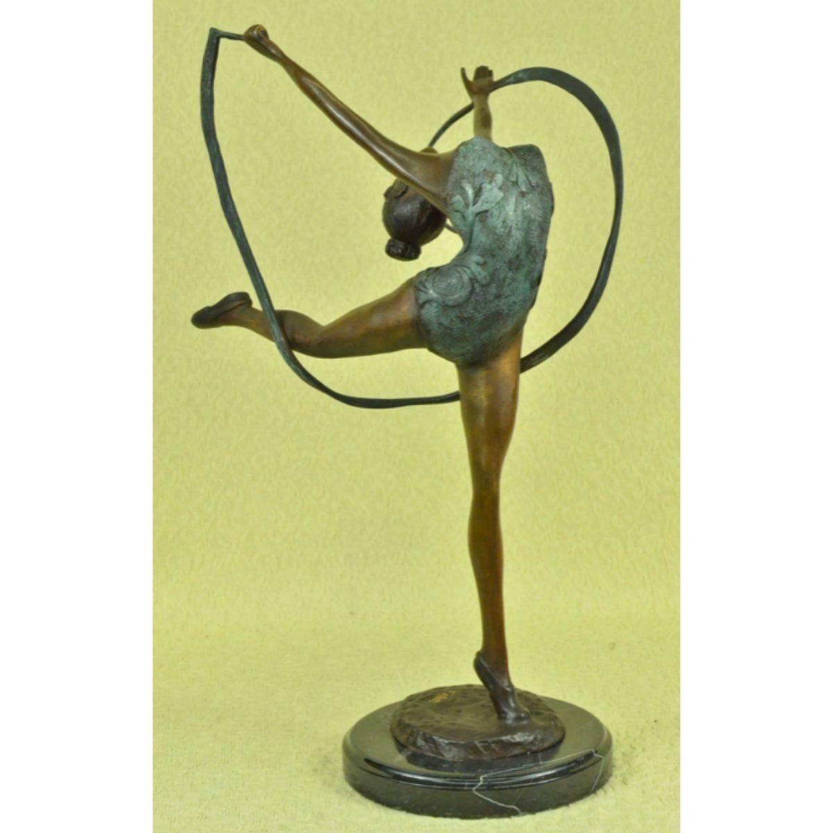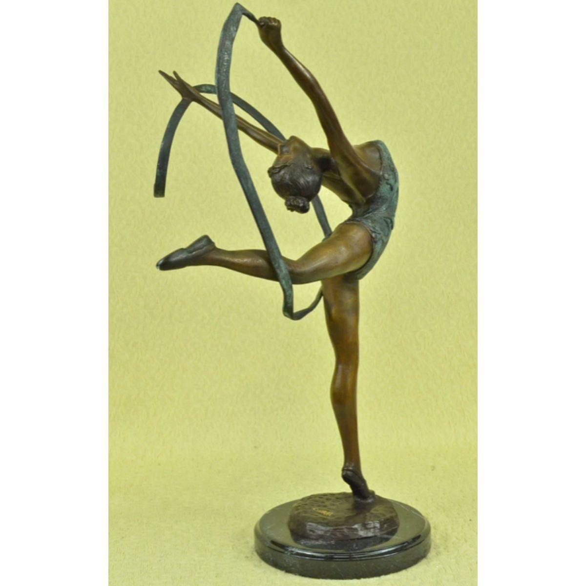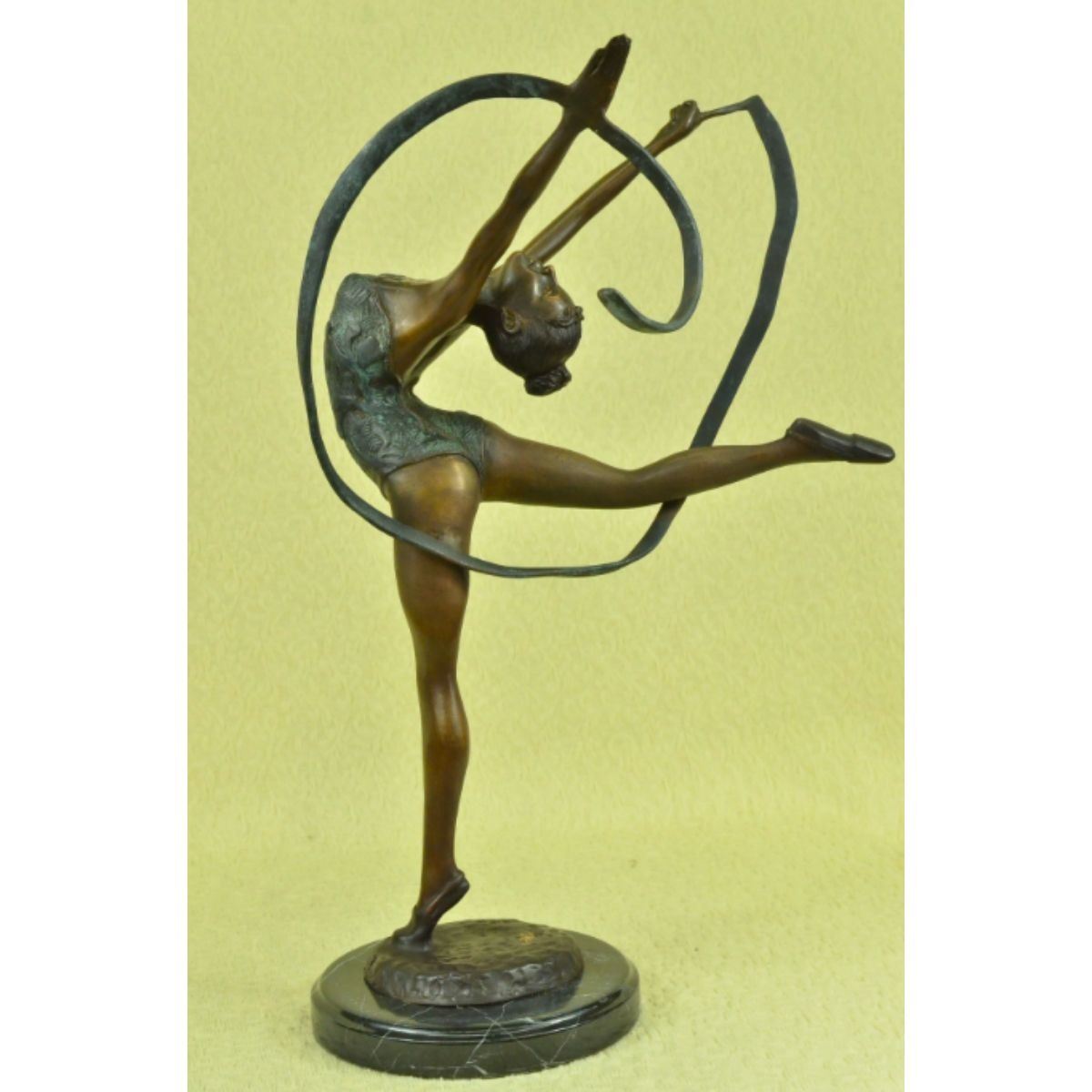 Limited edition of 100, gymnast sculpture. Lost wax casting method bronze, with brown & green patina, mounted on a marble base. Signed by the artist, Collett, to the base. 21 1/2" H X 14" W. 12lbs.Â