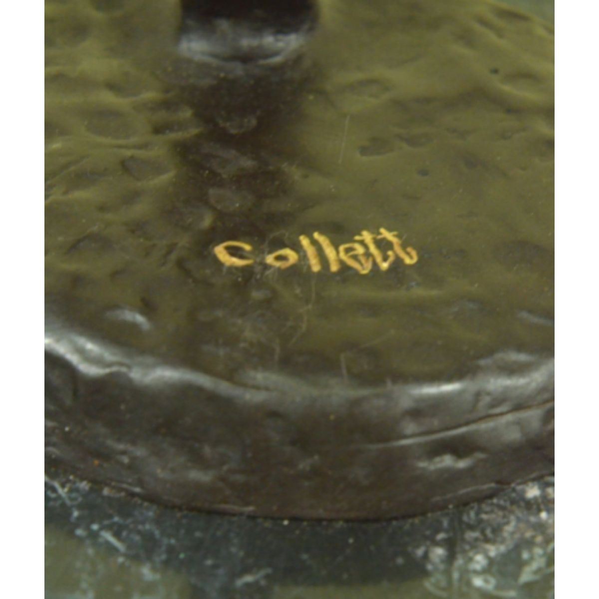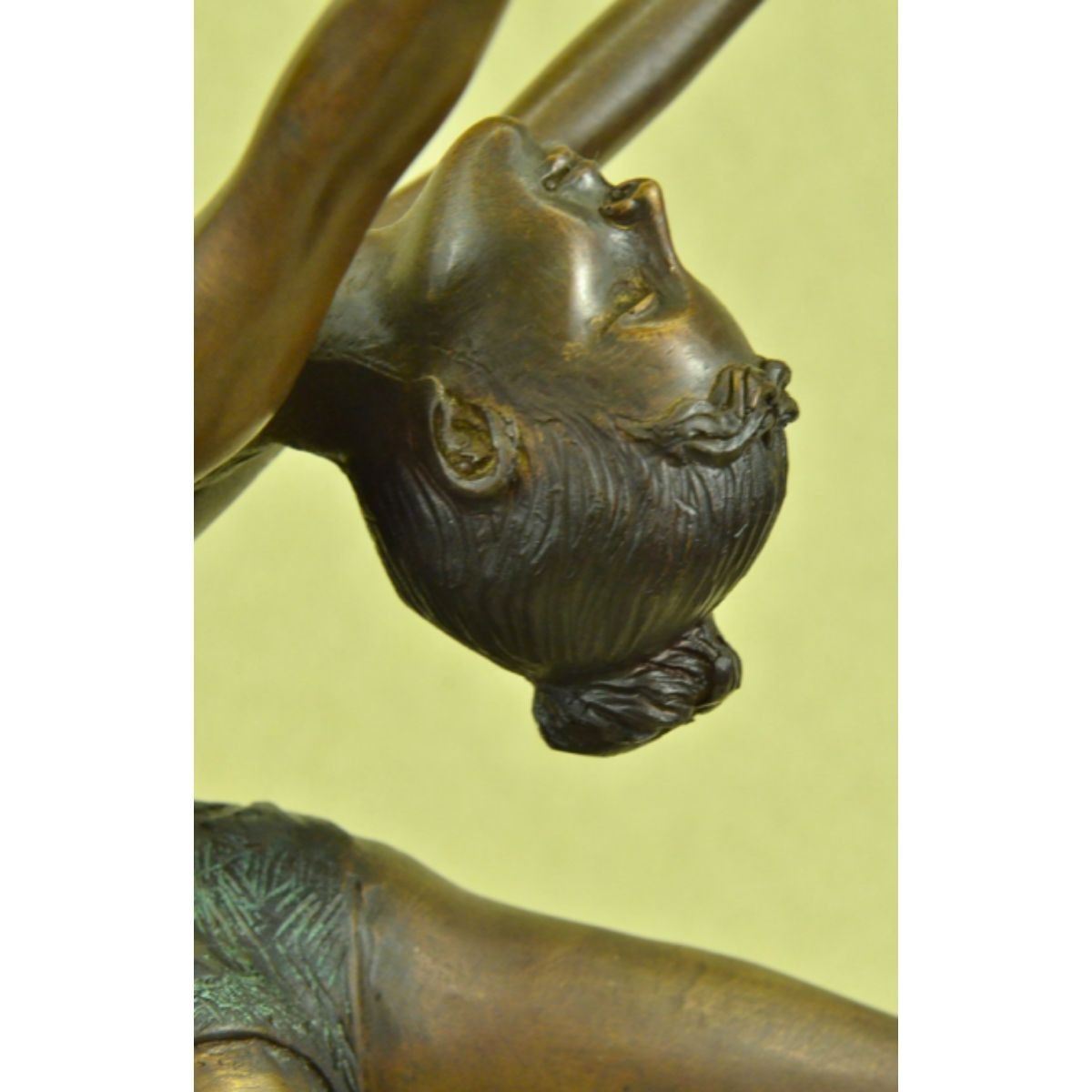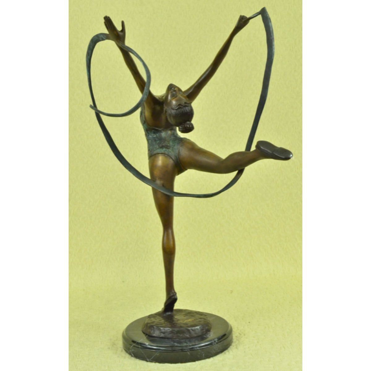 Limited edition of 100, gymnast sculpture. Lost wax casting method bronze, with brown & green patina, mounted on a marble base. Signed by the artist, Collett, to the base. 21 1/2" H X 14" W. 12lbs.Â