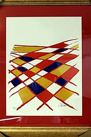 Limited Edition Authentic Lithograph Authentic Alexander Calder (July 22, 1898 – November 11, 1976) was an American sculptor best known as the originator of the mobile, a type of kinetic sculpture the delicately balanced or suspended components of which move in response to motor power or air currents; Authentic contrast, Calder’s stationary sculptures are called stabiles. approx. 23"x19"