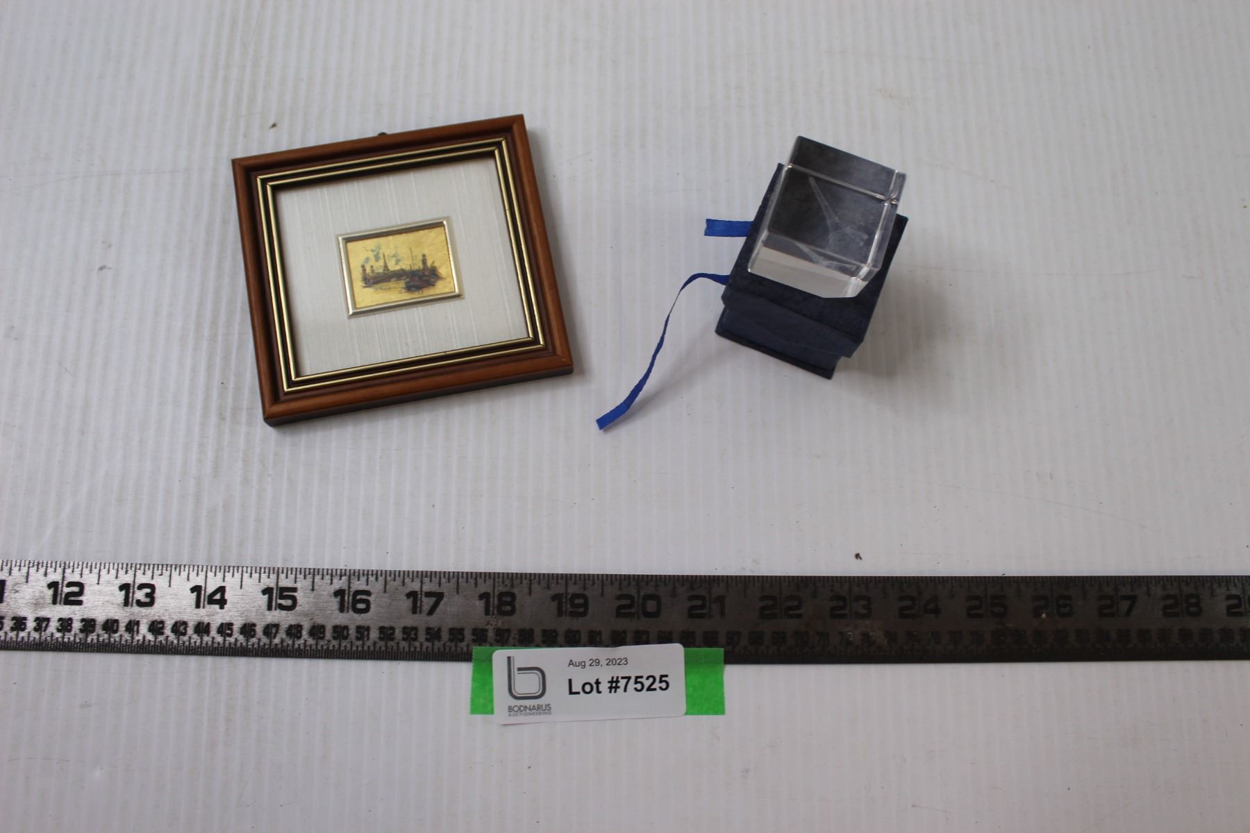 Limited Edition Chromolithography Paris Art Piece and Eiffel Tower Glass with Image
