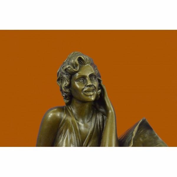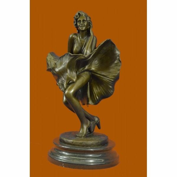 This original sculpture was started in Los Angeles, CA and was finished in Hampton New York. It was inspired by the person behind the facade that we all love and know so well. As a film maker, freelance artist and art teacher, I am very motivated to look deeper into all subjects, and did so with Marilyn Monroe here. Portraying her realistically in bronze was important to me to show the power that her image has had in our society and in the entertainment industry, but keeping her with a more solemn look was not only to be a bit sultry, but to show the woman behind the image. As another woman who has also been working in the film industry, albeit, behind the scenes, Marilyn and her life for me represent a beautiful and tragic story that reminds us all how short life is, yet how much impact we can have. It is also a reminder to remain true to oneself, and to be careful who and what we surround ourselves with. As powerful as her image remains, to me, she was just a real girl, who got lost in a tumultuous world. We can all choose to see her how we wish, with different facets of her life being important to us. So this was my tribute to her life, and her story, and one I will never truly know. The mystery continues. But the memory remains. I hope that the painstaking hours that went into her creation can bring joy and thought into someones life. She Is Made Of 100% Solid Bronze And Rests Upon A Solid Black Marble Base. Cast Using An Ancient Technique Called The "Lost Wax Method" Condition: This sculpture is in perfect condition. Bronze Dimensions with Marble Base:Height 13" x Width 7.5" Marble Dimensions:Diameter 6" Height without base: 11.5" Weight :12 LBS Inventory : 29STE11026792