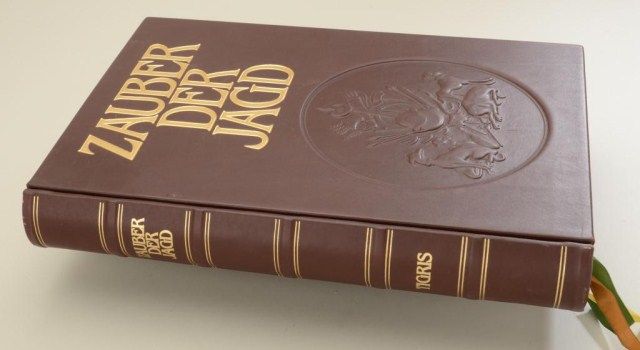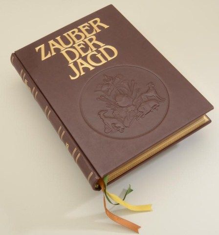 Limited Edition Deluxe oversized and ornate book entitled Zauber Der Jaged by Tigris with certificate #1921, notarized in Munich, inscribed presentation Mr. Petersen from gunsmith Peter Hofer; approx. 16” x 30-1/2”by 2-1/2” thick; superb pictures, wonderful quality printing, a very expensive book. From the estate of Robert Petersen. Est.: $250-$500.