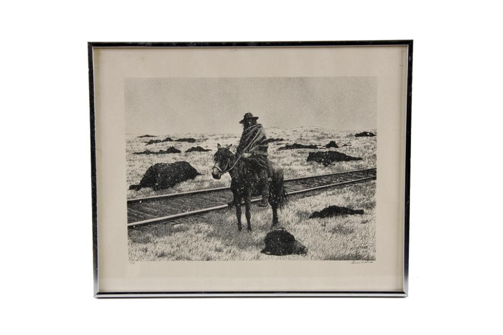 Limited Edition Fine Art Print By Gene Matras, #19/135, depicting an Indian on horseback, image size