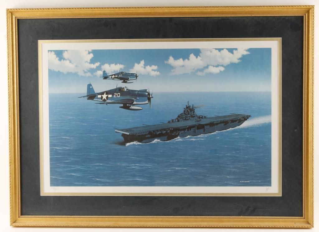 #934 of 960 Entitled "USS Lexington". Hand signed lower right hand corner, double matted in gold gilt frame. Image measures 27x17 1/2"