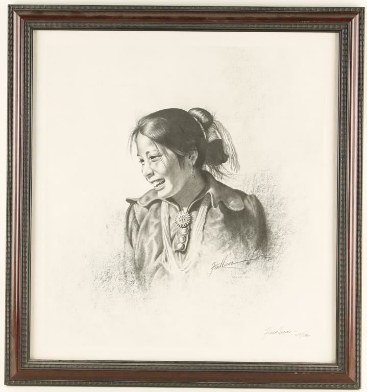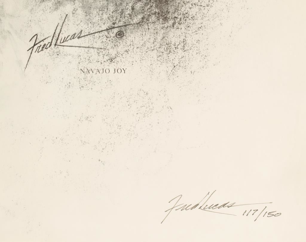 Arizona Artist Fred Lucas "Navajo Joy". 117/150. Image measures 17 3/4"x19" in wood frame.