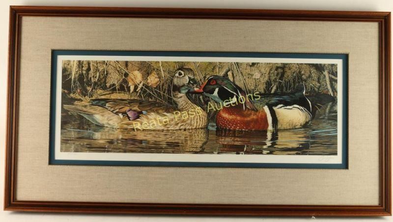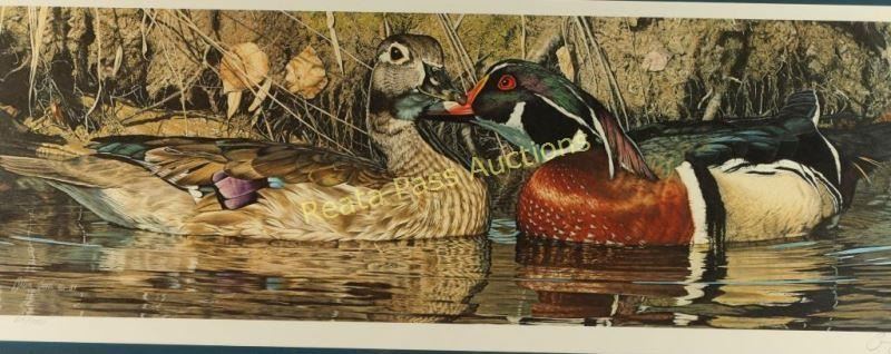 "Spring Courtship" by Brian Jarvi 65/780, hand signed lower right. Image measures 30 1/2" x 11 1/4" in double mat with gold fillet and wood frame, very nicely done.