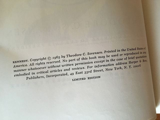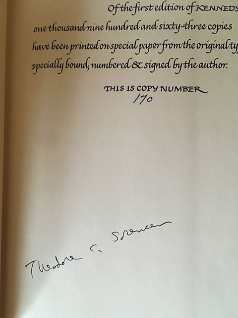 Limited Edition with slid case, Kennedy, by Theodore Sorensen, signed by author and numbered 170. Does have additional inscription on title page.